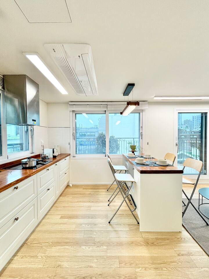 Discover our bright loft, 5 mins from Line 3 Yeonsinnae Station.