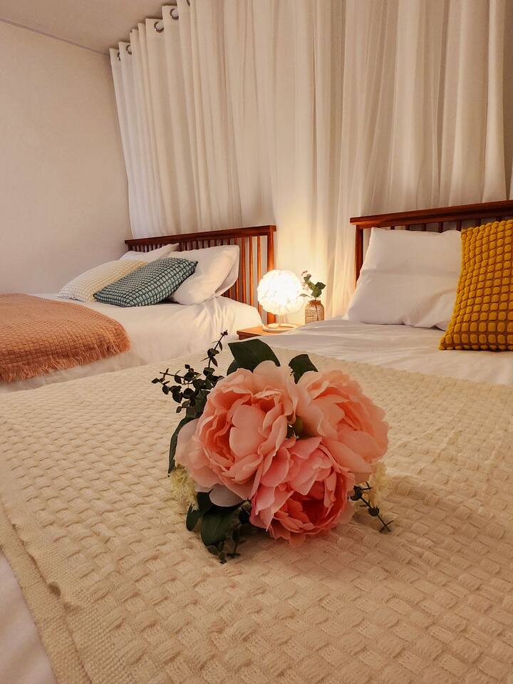 3 bedrooms with 4 queen-sized beds