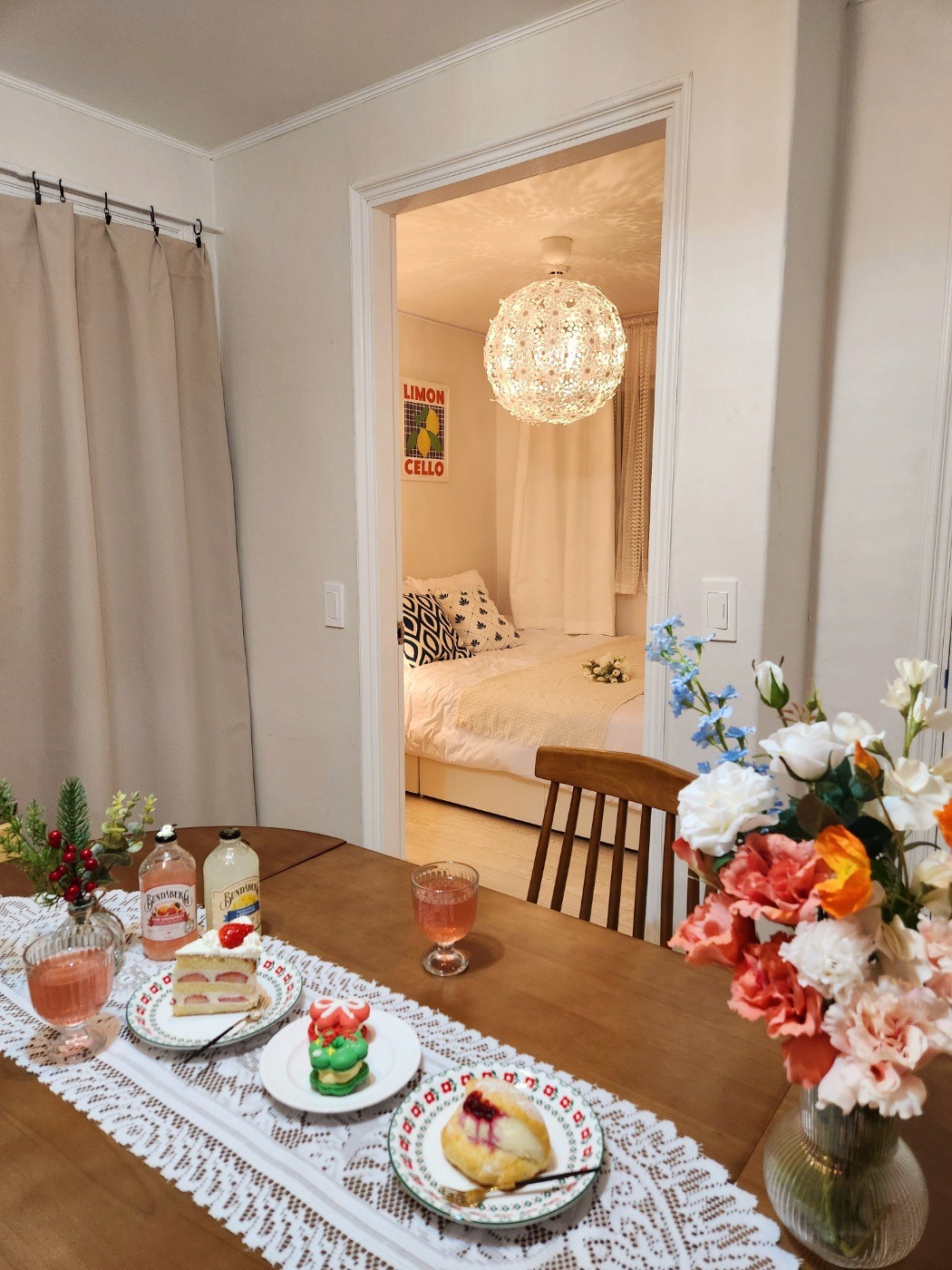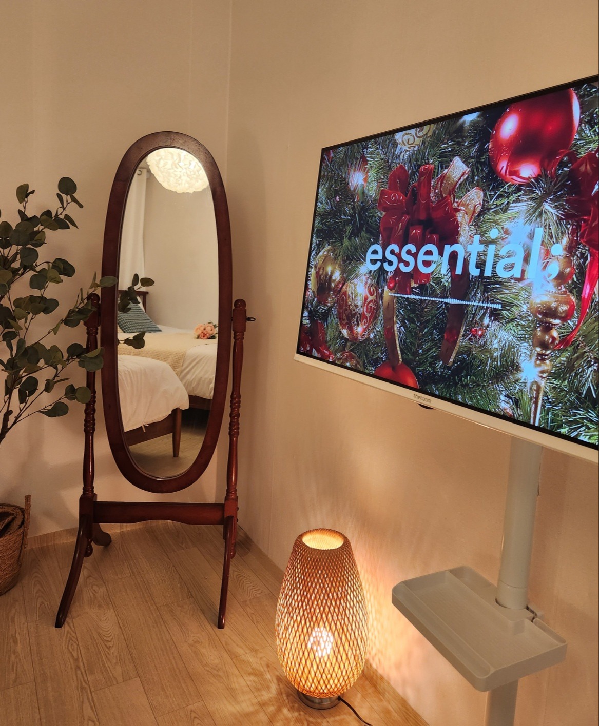 Cozy atmosphere with soft lighting, plants, and decorative items