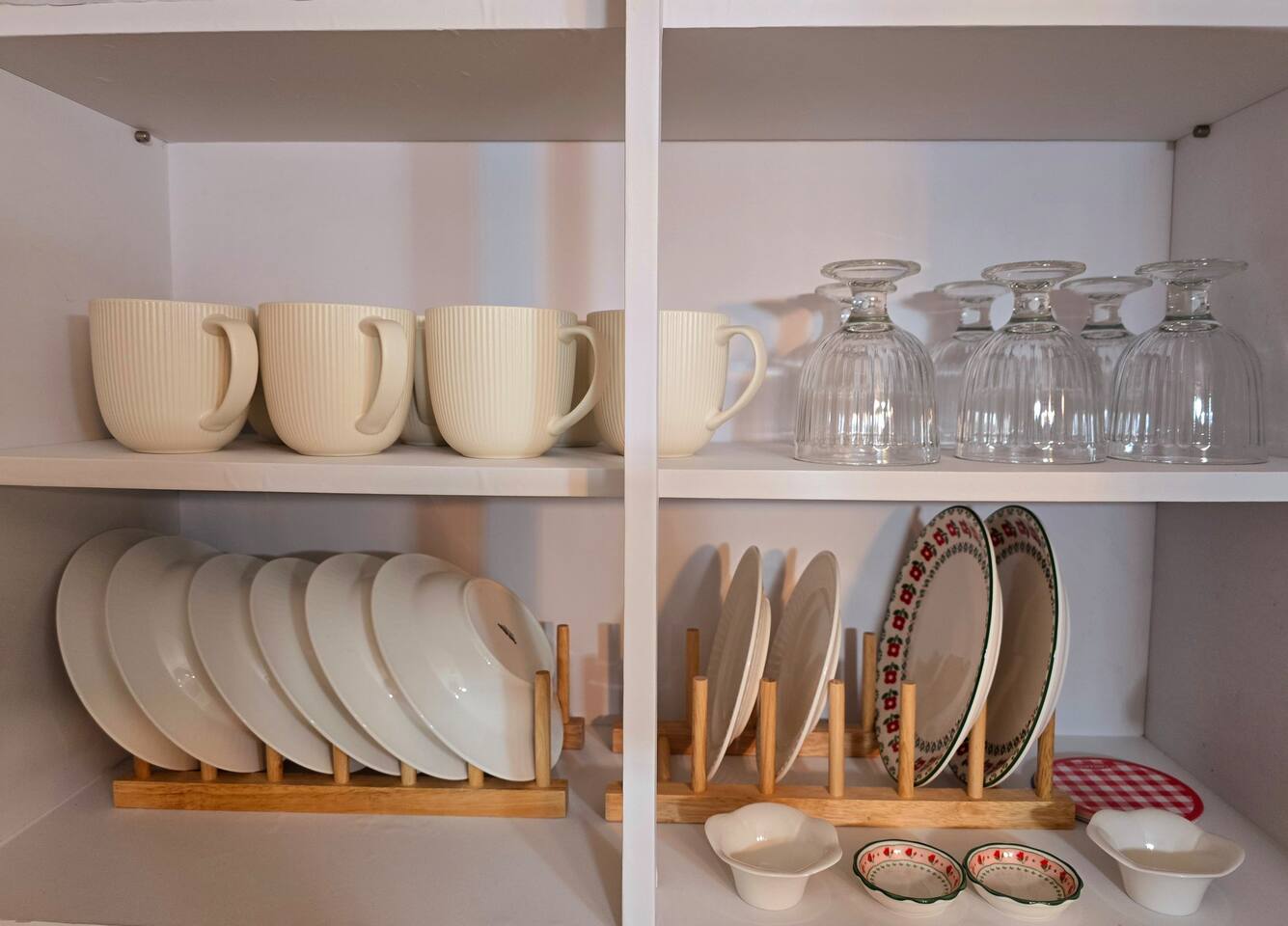 Drinkware: mugs, wine glasses, soju glasses, wine opener