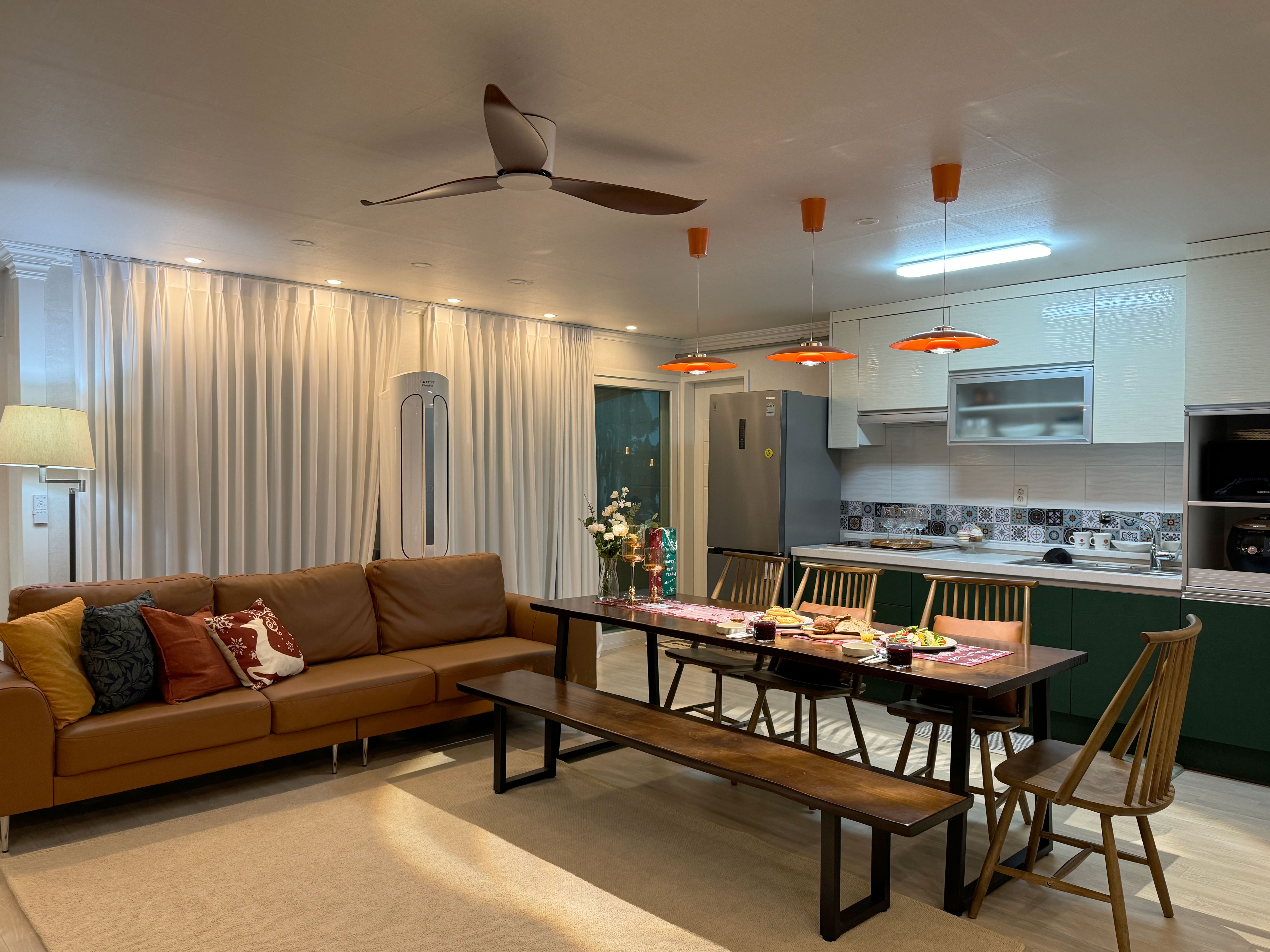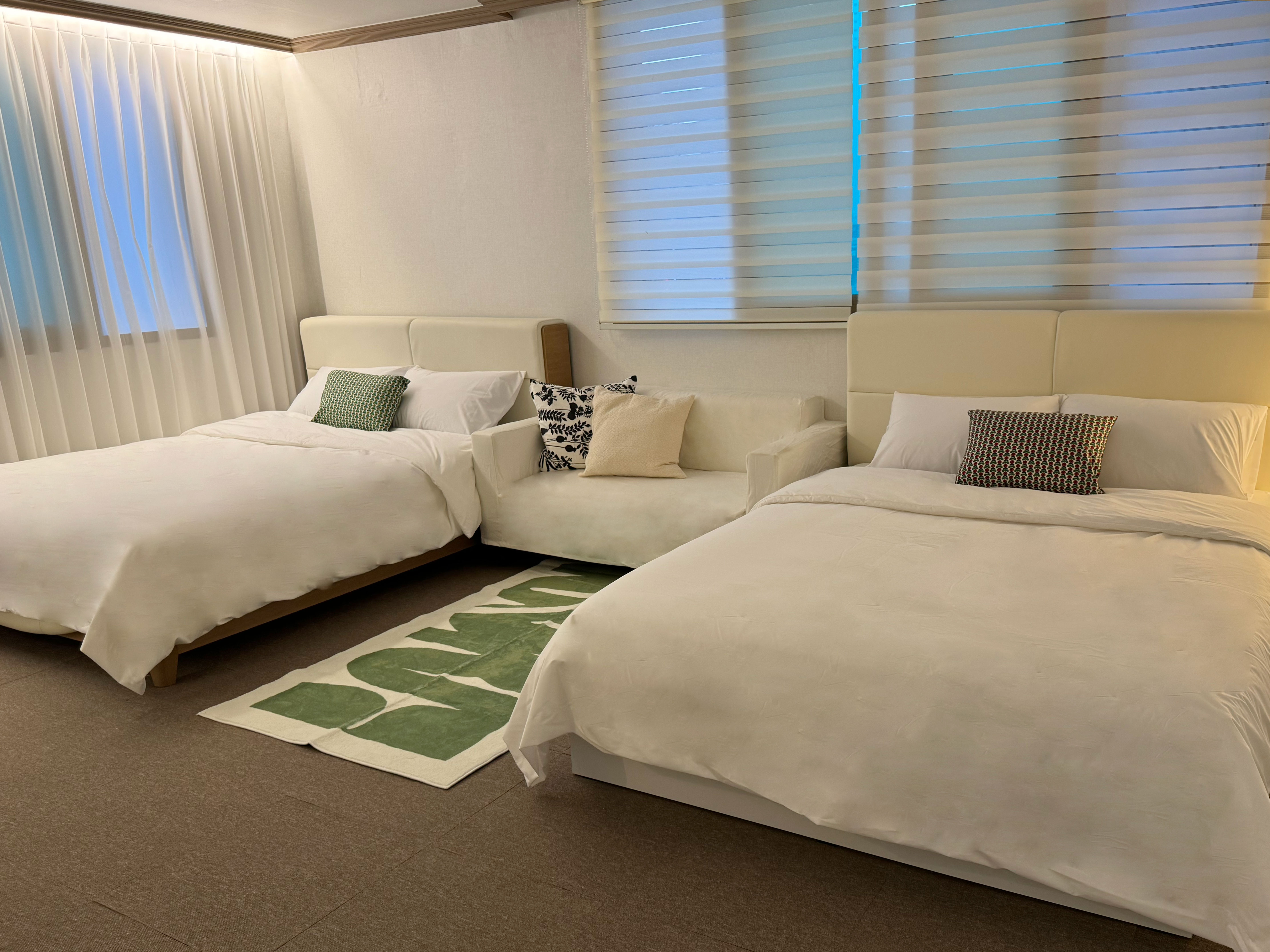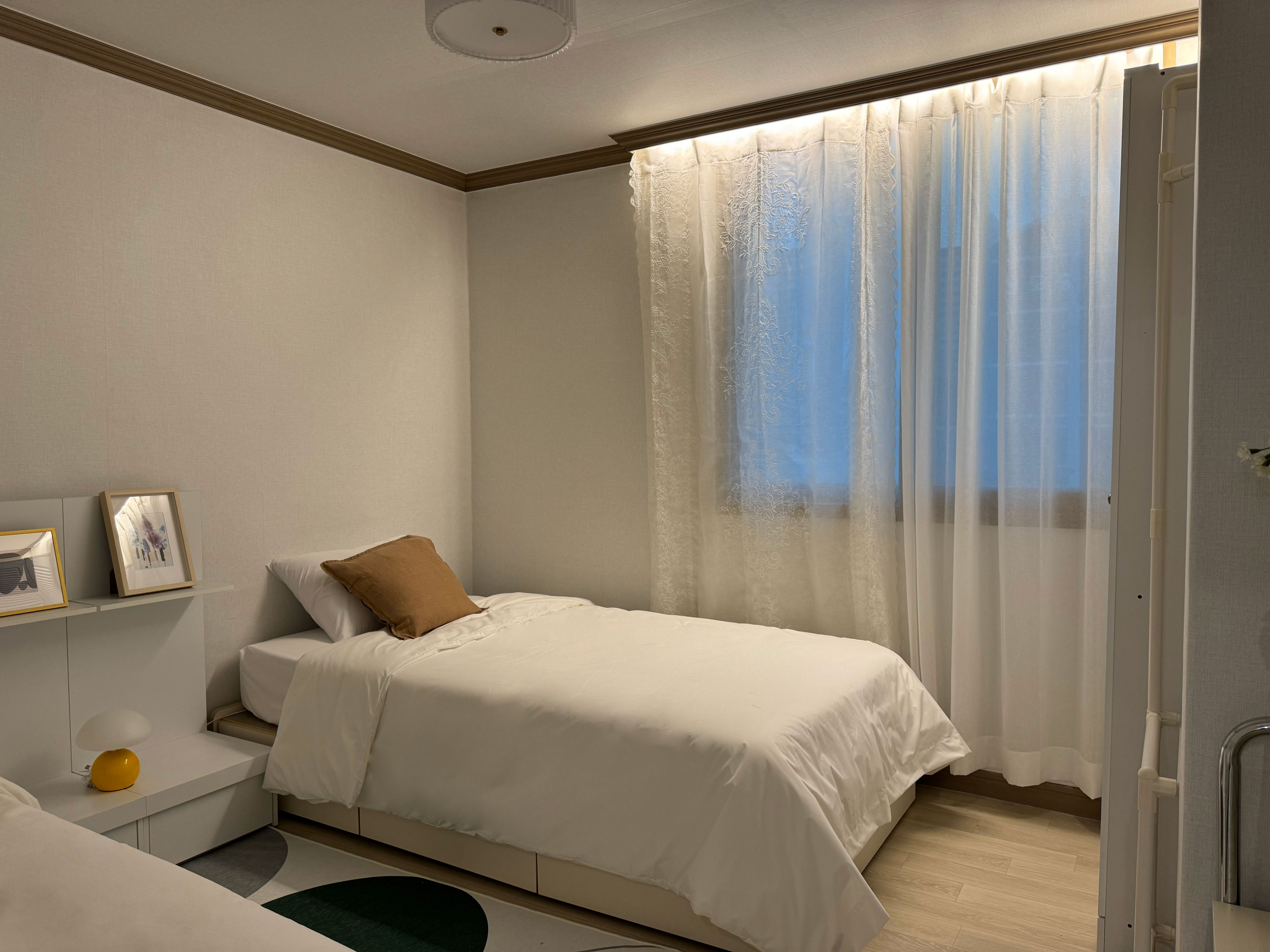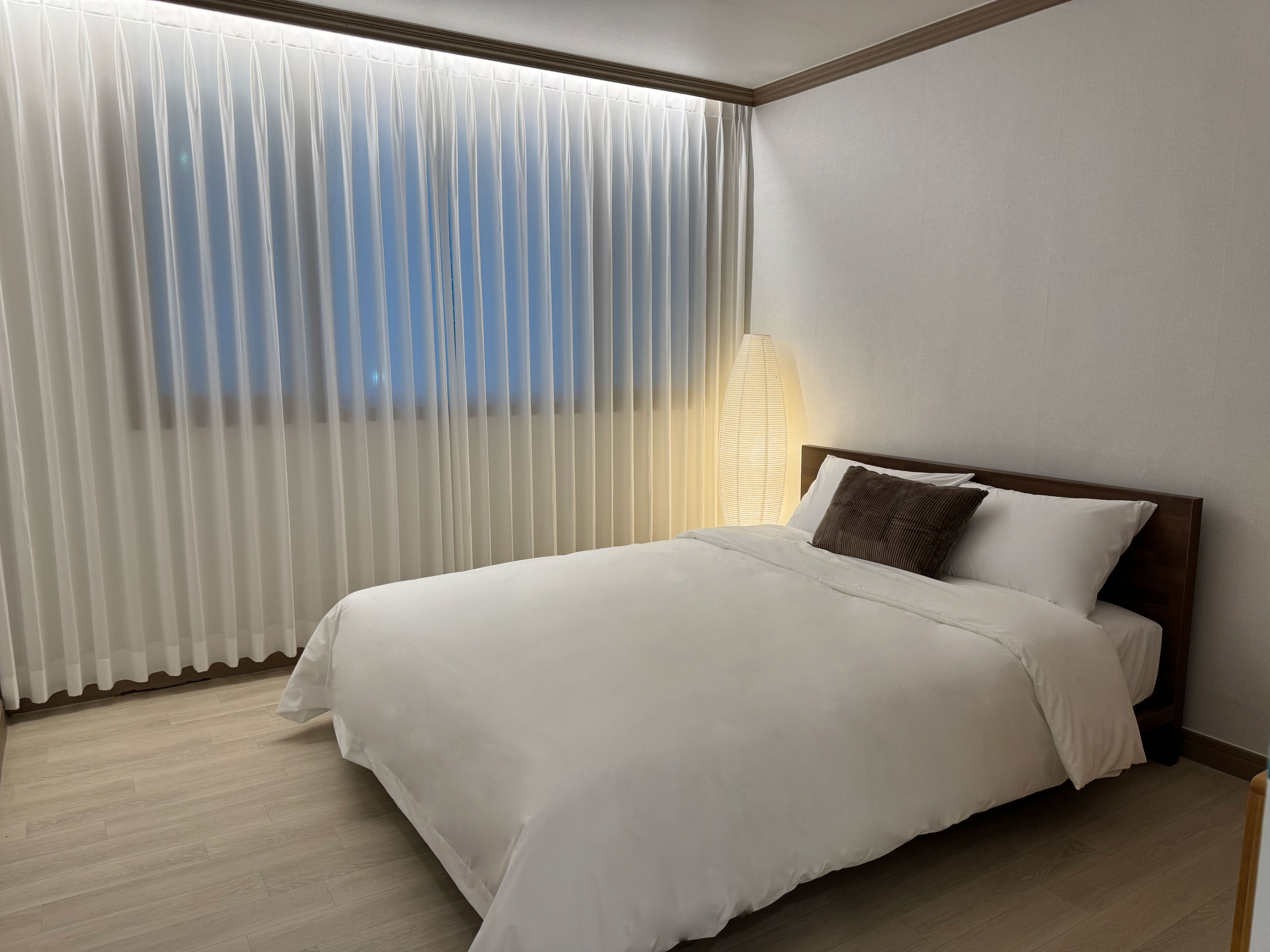 "Luna mar", a Haeundae emotional accommodation located 5 minutes from Jungdong Station, is a cozy and emotional space that will provide you with a comfortable resting place during your trip. Because it is a large space, there is no problem with many people staying, and it is good for creating a special atmosphere with a pretty private terrace. We hope you will make many pretty memories while staying at our accommodation. - 10 people / 5 beds (3 queens, 2 super singles + additional blankets and pillows available) - 5 minutes on foot from Exit 10 of Jungdong Station - 10 minutes by car to Haeundae Beach - Various restaurants, cafes, and amenities within 1 minute of the accommodation - 5 minutes by car to Haeundae Rodeo Street, Haeundae Blue Line Park Mipo Station - 15 minutes to BEXCO - 1 free parking space (Please inquire in advance when parking) ✅ "Luna mar" is a legal accommodation that has officially reported a foreign city homestay business. Domestic residents can make reservations through Wehome. - There are cafes and restaurants on the first floor, and there are hospitals, marts, and convenience stores within 5 minutes for your convenience. - Free parking is available. If you need parking, please let us know in advance after making a reservation. - Free Wi-Fi / Free Netflix. [Luna mar] can accommodate up to 10 people. It has 3 rooms, 1 bathroom, a large living room, and a private terrace, so it is spacious. Room 1: 2 queen beds + 2-person sofa Room 2: 2 single beds Room 3: 1 queen bed Living room: 4-person sofa and 10-person table - When booking for 1-2 people ---> Room 2 OR Room 3 can be used - When booking for 3-4 people ---> Room 1 OR Room 2 + Room 3 can be used - When booking for 5 or more people ---> Room 1, Room 2, and Room 3 can all be used ✔️ Long-term stays of 6 nights and 7 days or more are not applicable. For guests staying short-term and wishing to use separate beds or add additional rooms, please refer to the above information and make a reservation after adding people. - Room 1 (4 people) - 2 queen beds / 2-person sofa / side table / lighting / hanger / hanger / full-length mirror - Room 2 (2 people) - 2 super single beds / side table / lighting / hanger / hanger / closet / mirror - Room 3 (2 people) - 1 queen bed / side table / lighting / hanger / closet - Living room and kitchen - 4-person sofa / stand air conditioner / dining table / chair / lighting / stand TV Large refrigerator / microwave / electric kettle / induction / rice cooker / various dishes / various glasses / cooking utensils / pots / frying pans / trash can - Bathroom - Shampoo / conditioner / body wash / hand wash / foam cleansing / toothpaste / towel / hair dryer / toilet paper - Terrace - Sofa and chair / table / indoor slippers / emotional photo zone - Laundry area - Washing machine ✅ Precautions when using the accommodation 1. Please inquire in advance for early check-in and late check-out. 2. Please separate general waste, recyclables, and food waste before throwing them away. (There are trash cans for each type.) 3. Please turn off the lights, boiler, and air conditioner when checking out. 4. Please check again that the front door lock is properly locked before leaving. 5. CCTV is installed at the entrance for the safety of guests and entry/exit management. (Outdoor installation) 6. Manner time is from 9 PM. Please be mindful of noise after that. 7. This accommodation is a non-smoking area (including the terrace), and the smoke will trigger the fire alarm if you smoke. If smoking is discovered, it will be difficult to operate the accommodation, so we will charge you 7 days of accommodation fee. 8. Pets are not allowed and entry is not allowed.
