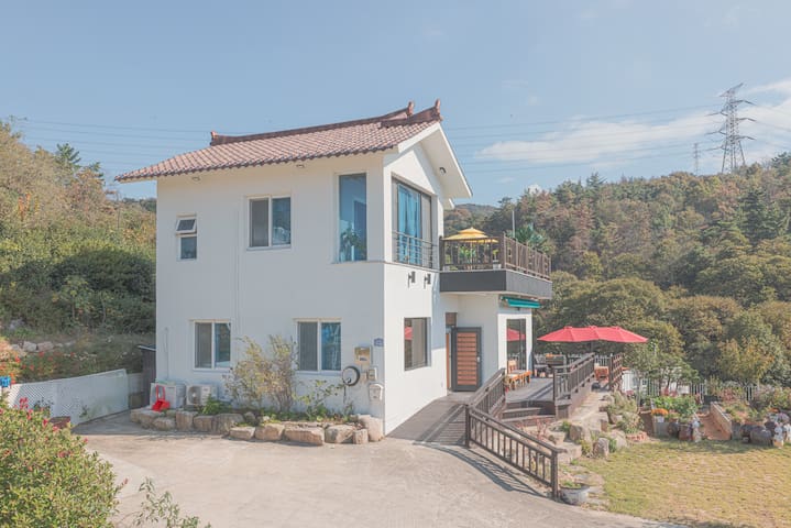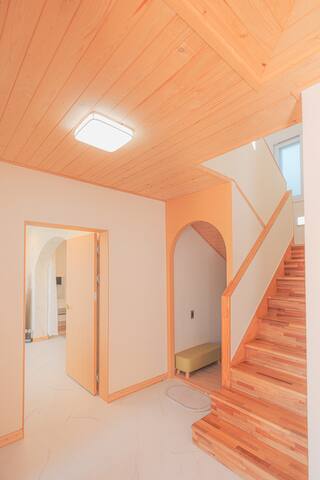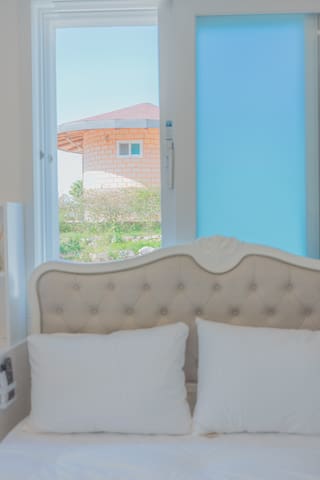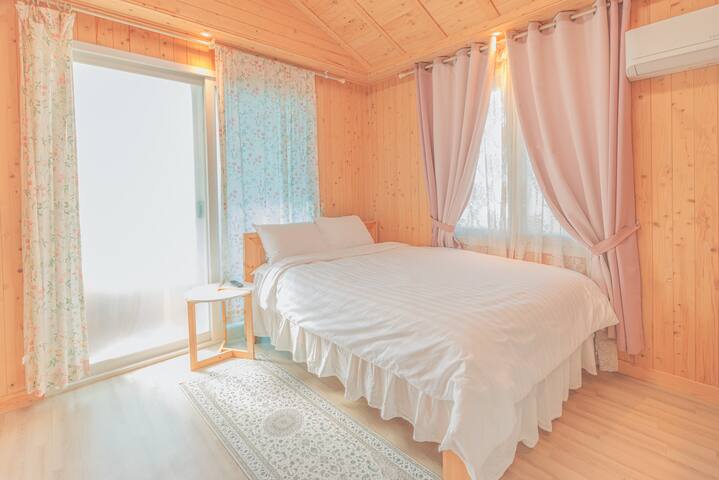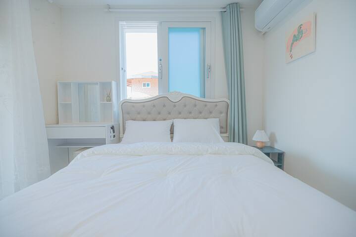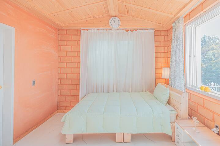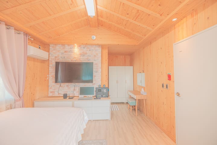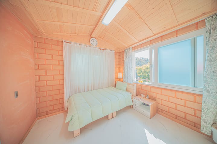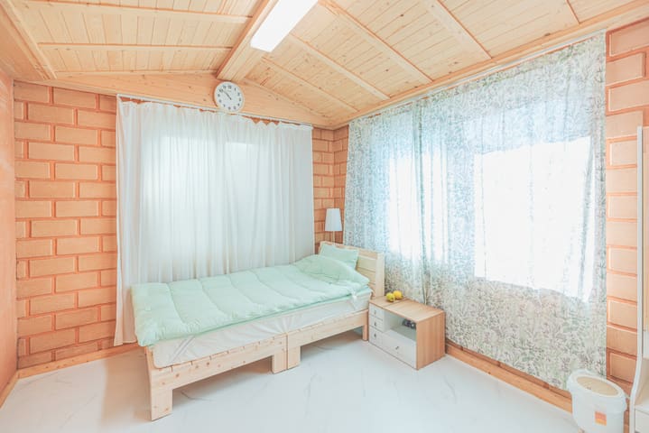 . 퀸사이즈의 깨끗한 침대가 있는 방1개, 슈퍼싱글 침대가 있는 황토방과 노래방 시설, 독 서 공간, 세탁실, 욕실 2개가 있습니다.
