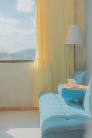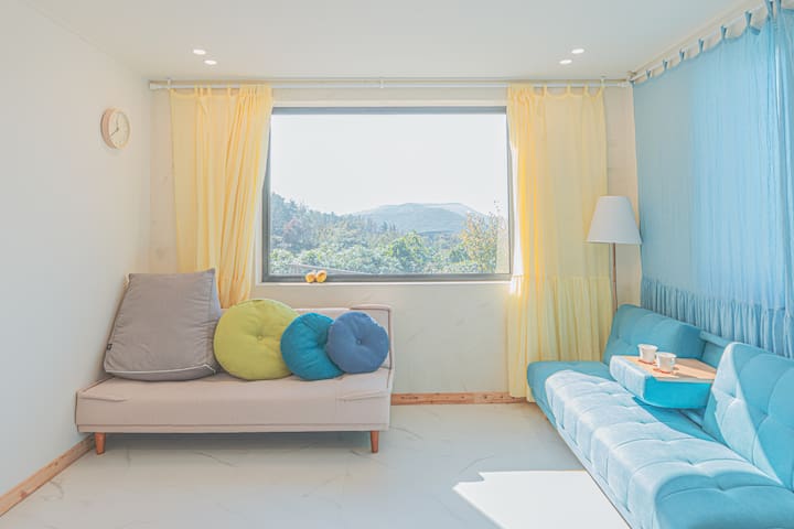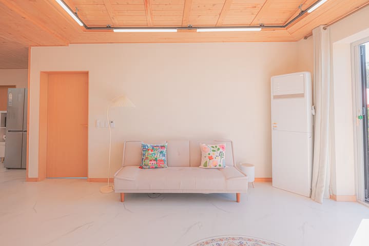. 거실 : 넓고 아늑한 공간에서 편안한 쇼파에 앉아 여유로운 쉼과 시골뷰를 만끽하세요.