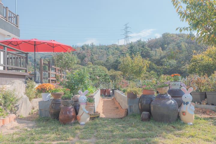 → 독채 전통 황토방 : 그네, 텃밭, 화단, 블루베리 정원의 풍경으로 힐링하세요. (추가 100,000원)