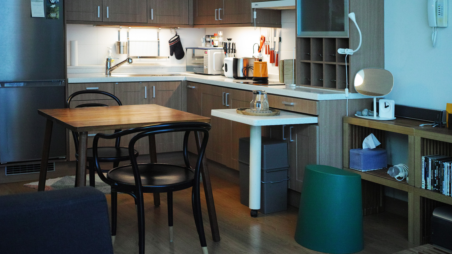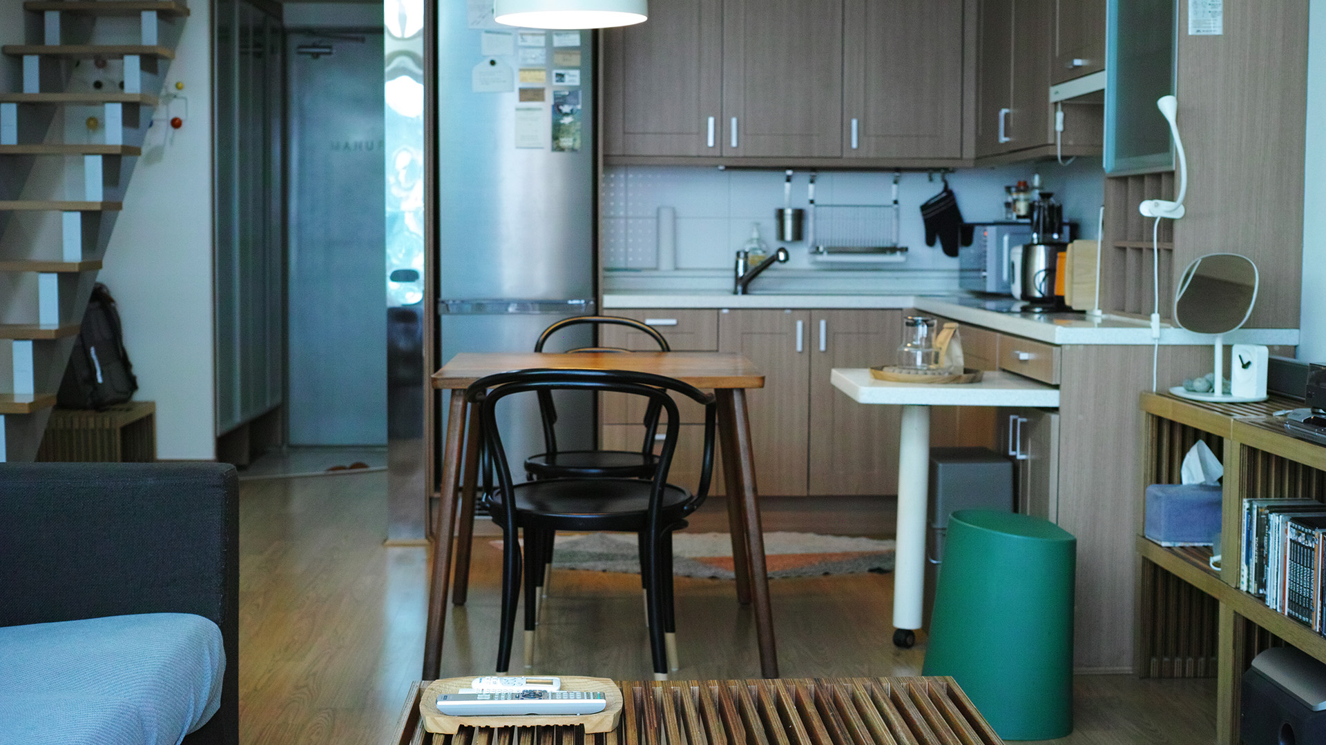 The two-story accommodation is on the second floor, and the rest of the kitchen and living room toilets are on the first floor.