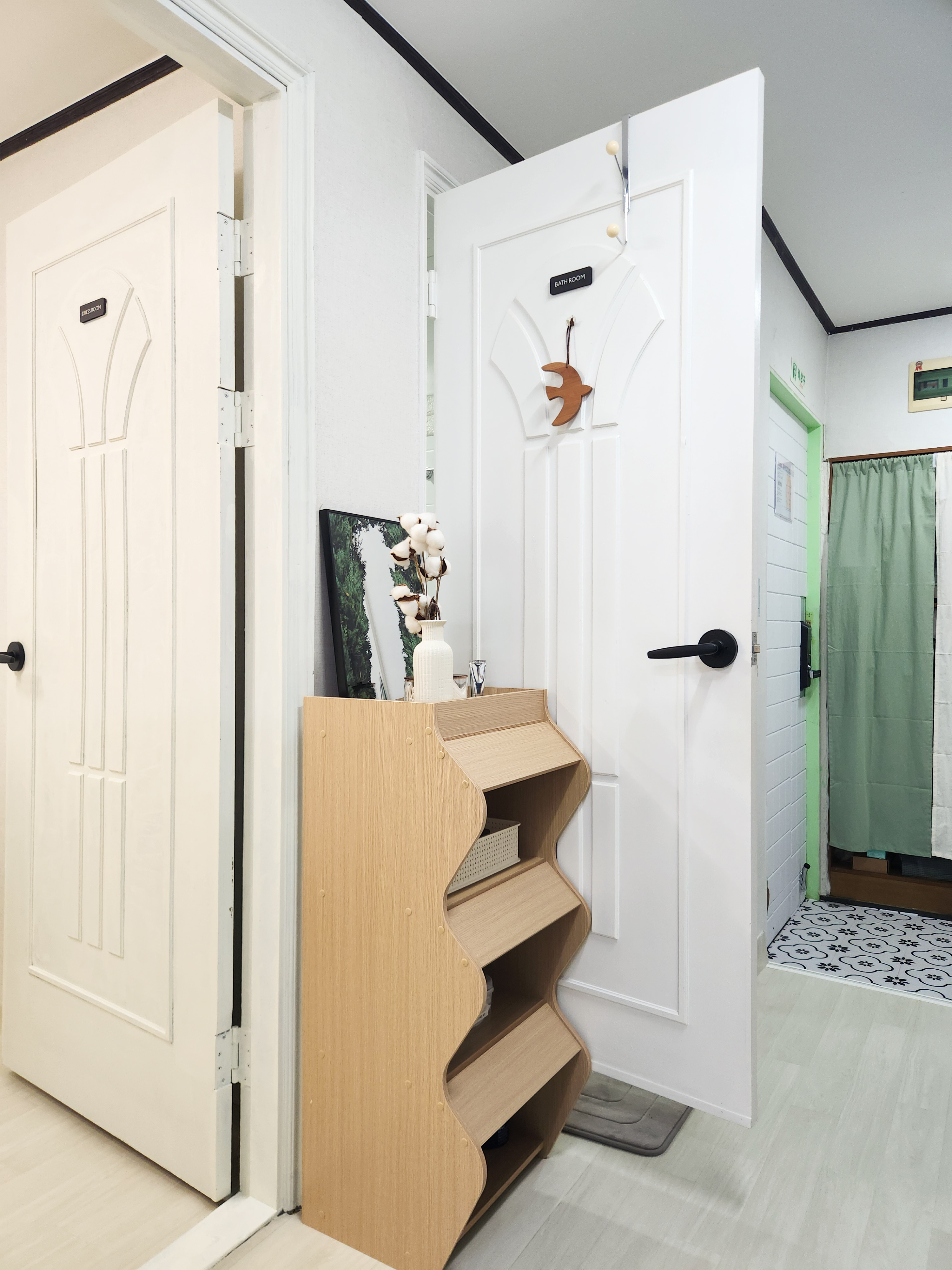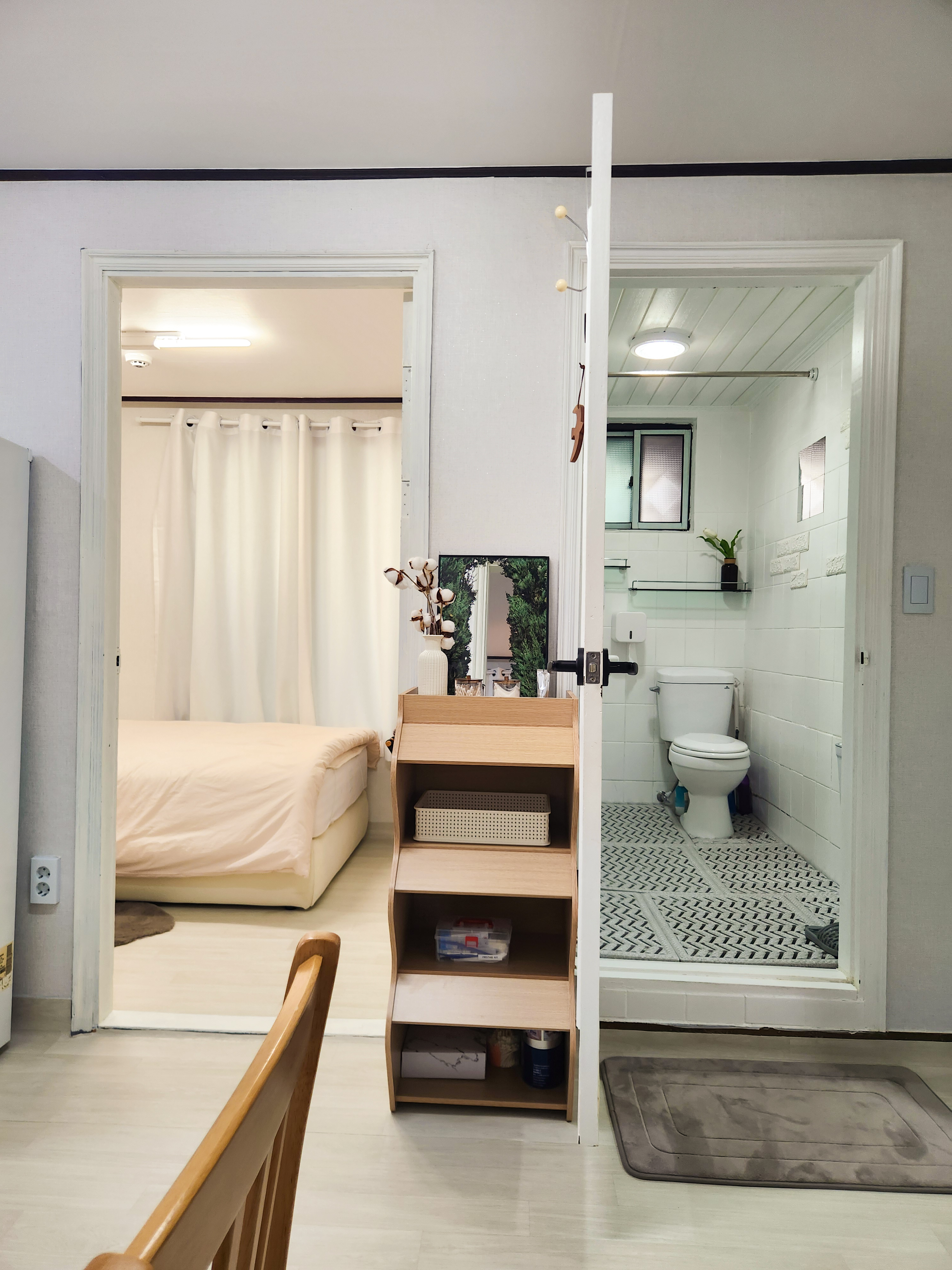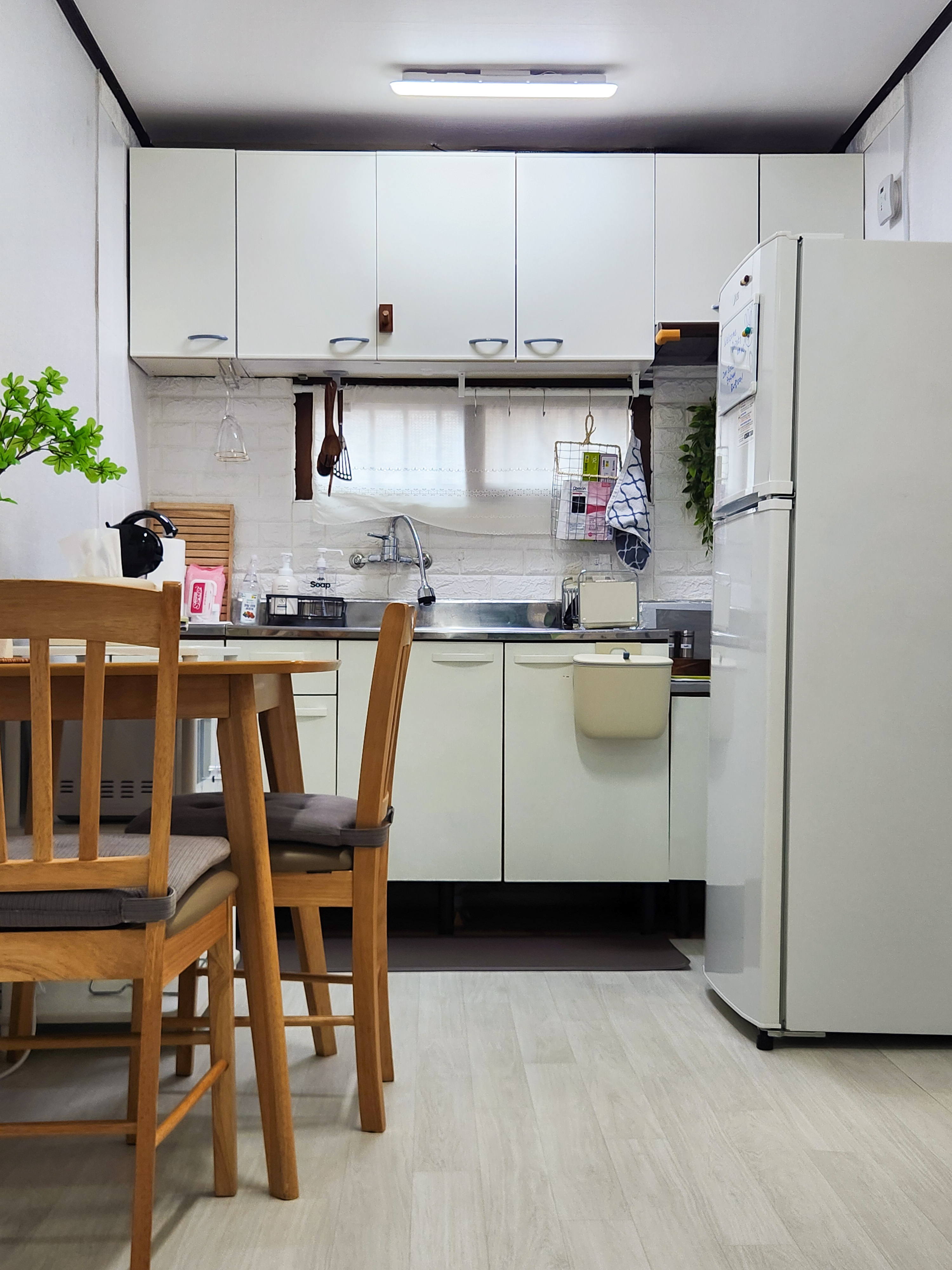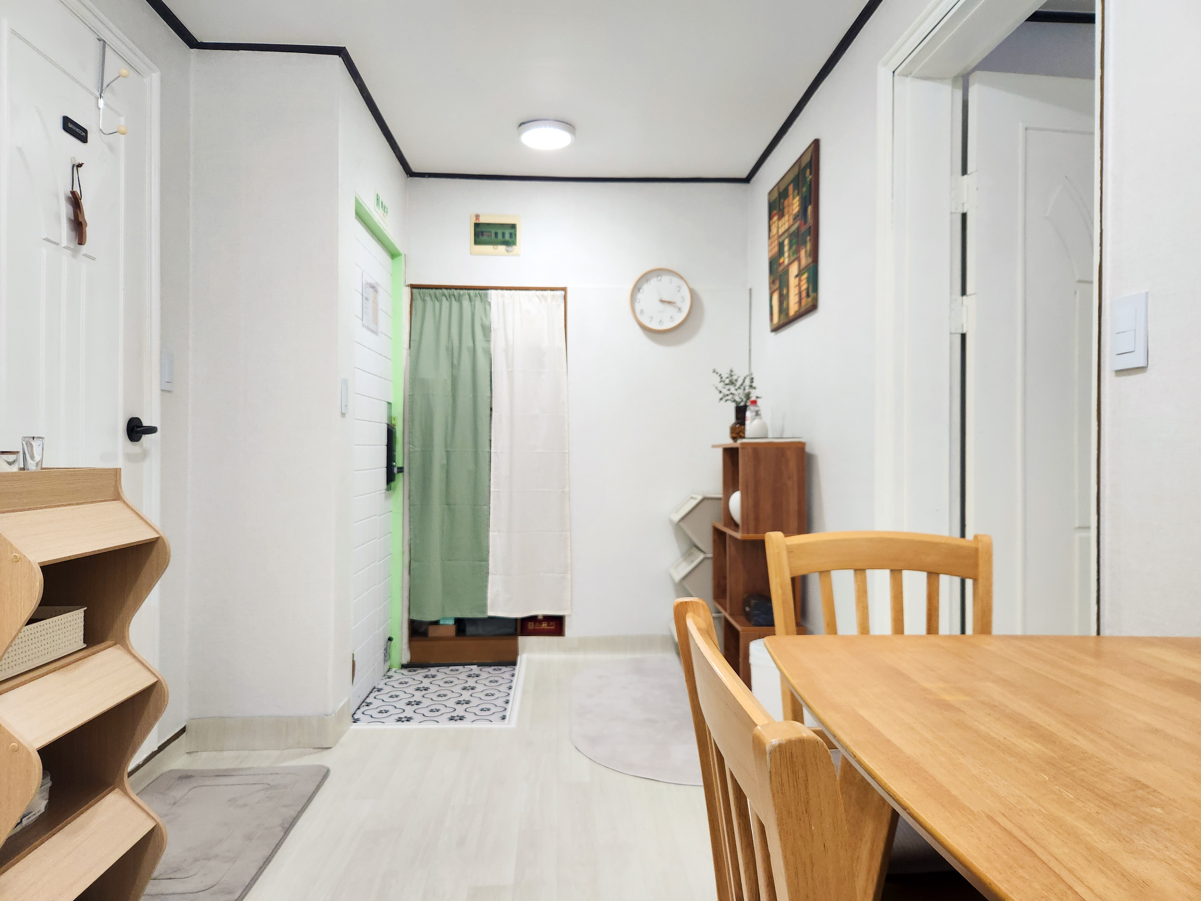 Inn Seoul has 2 bedrooms, 1 bathroom, a living/kitchen room and a separate laundry+ dryer area.