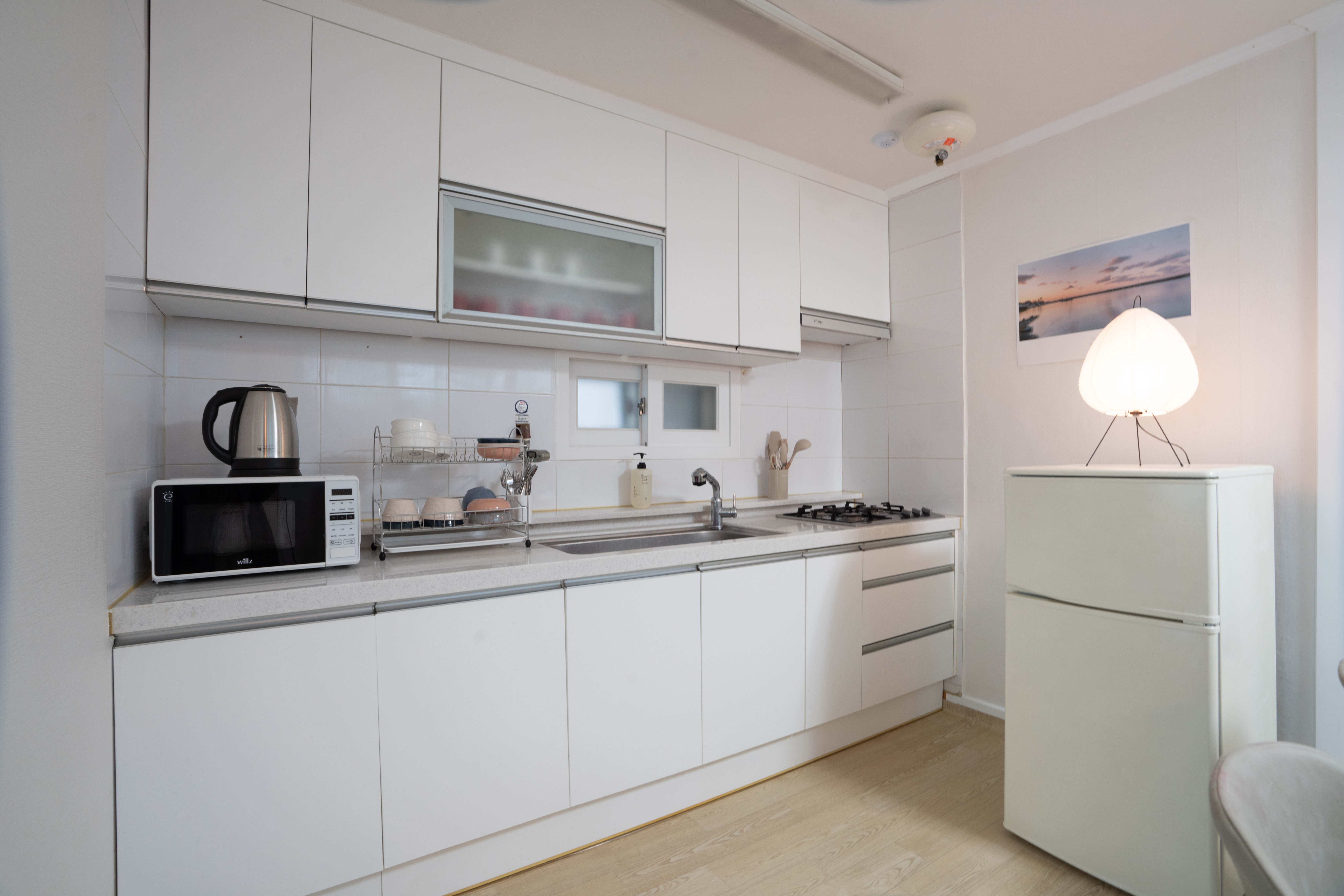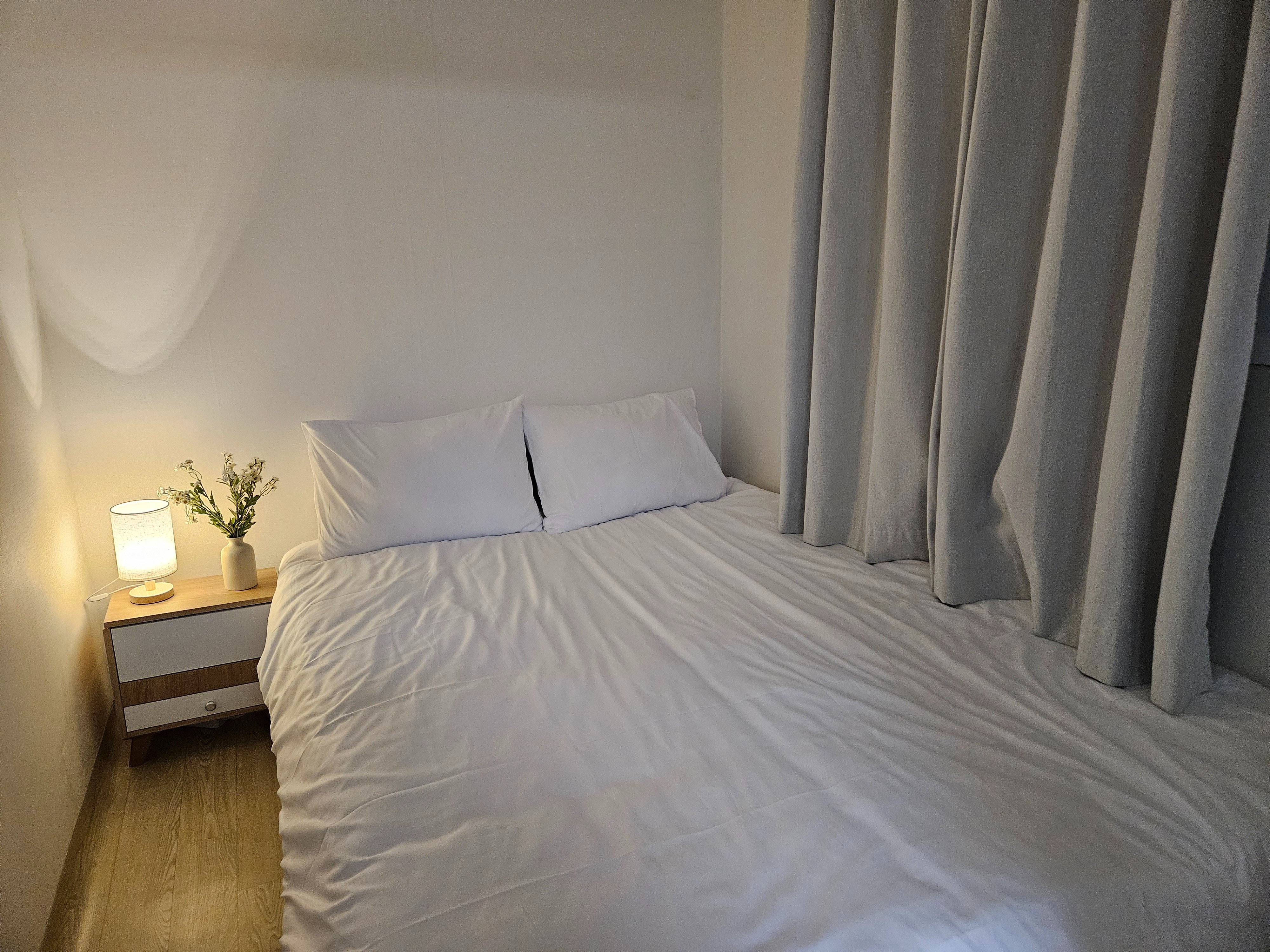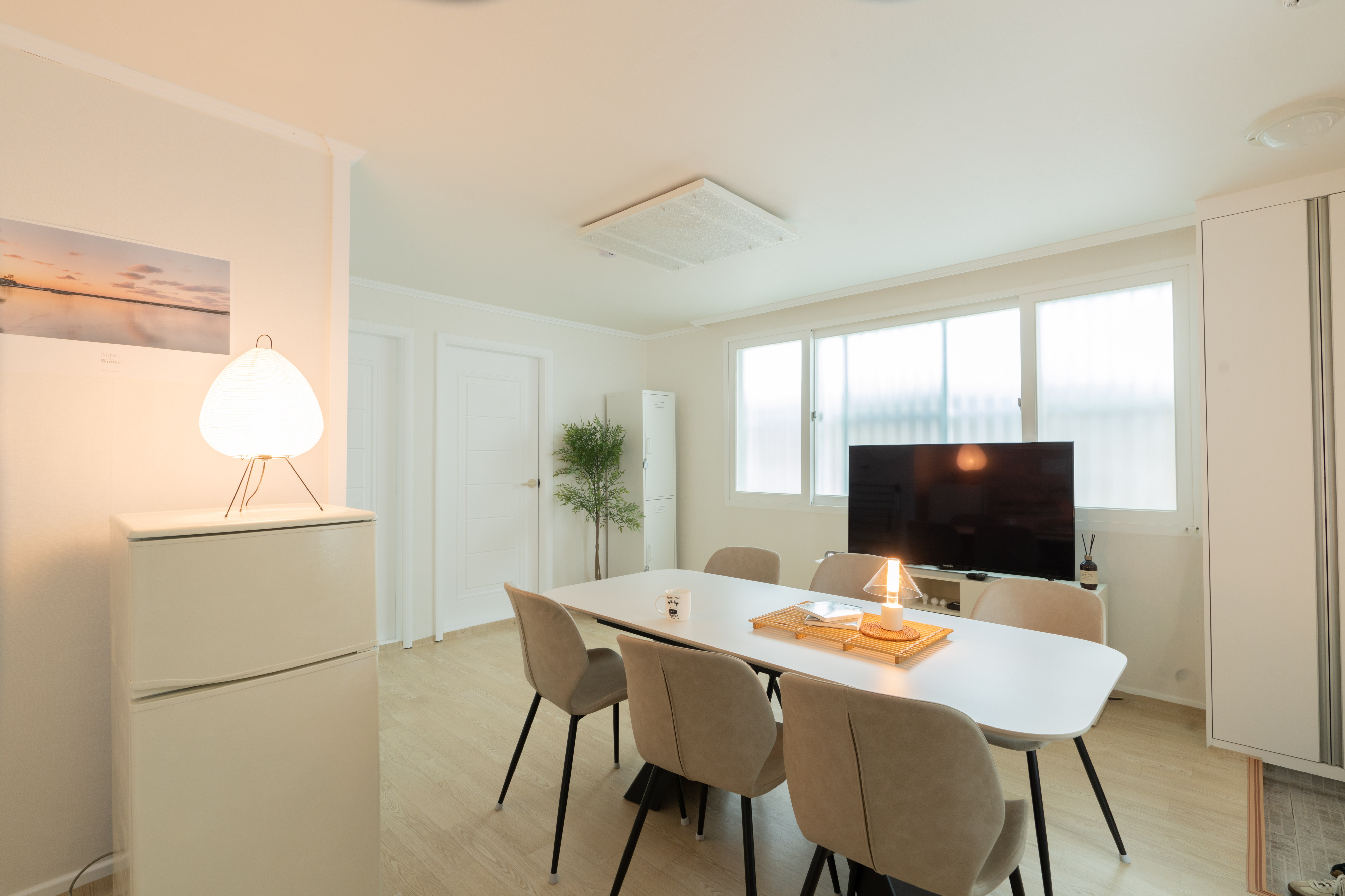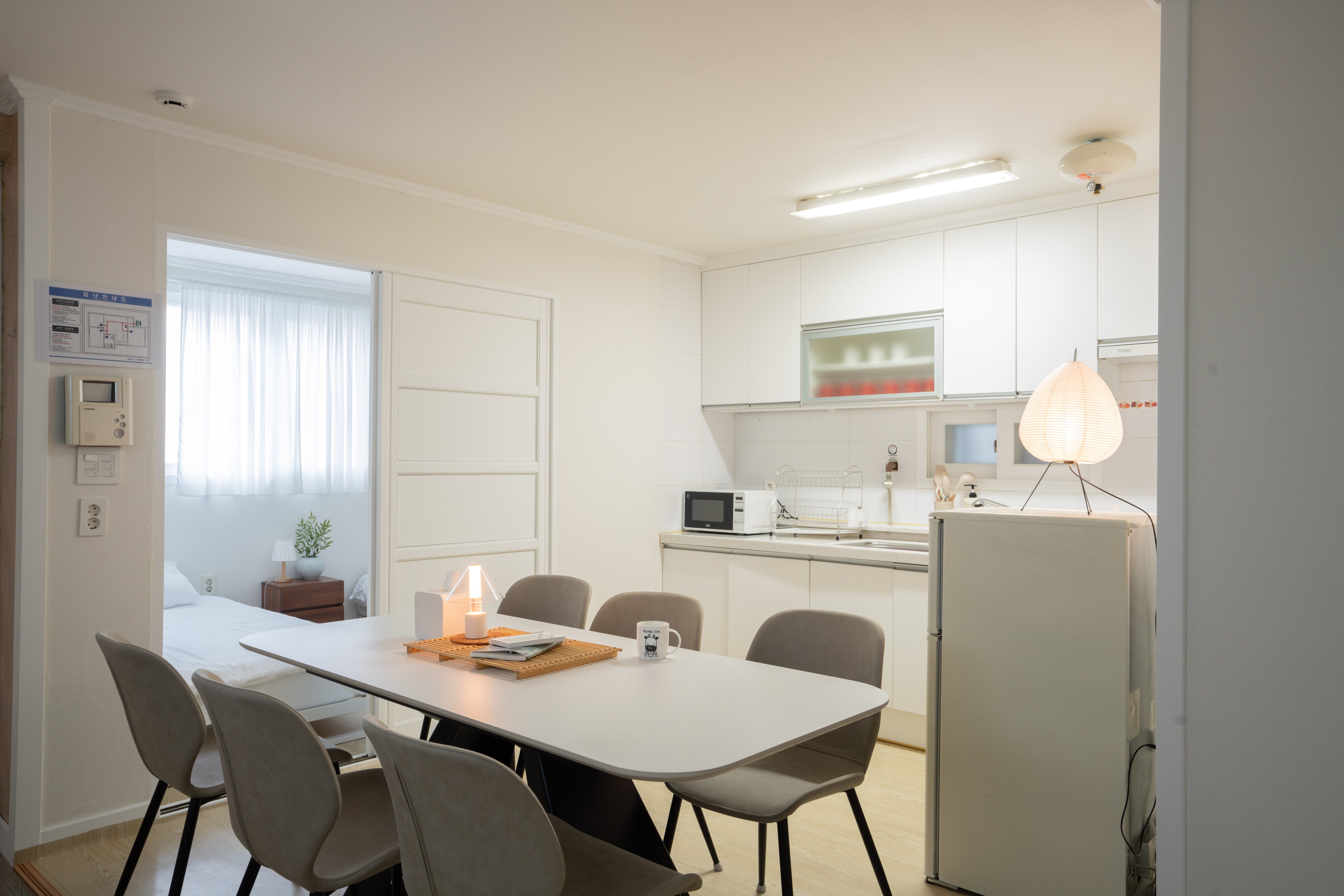 It is a space that provides a warm atmosphere with an emotional interior decorated in white tone and Korean props arranged everywhere. It is a clean bedding, warm kitchen, and detached house, so you can stay freely without worrying about staying quiet.