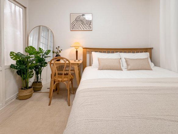 1 Queen bed, smart TV, dressing table, full-length mirror, air conditioner