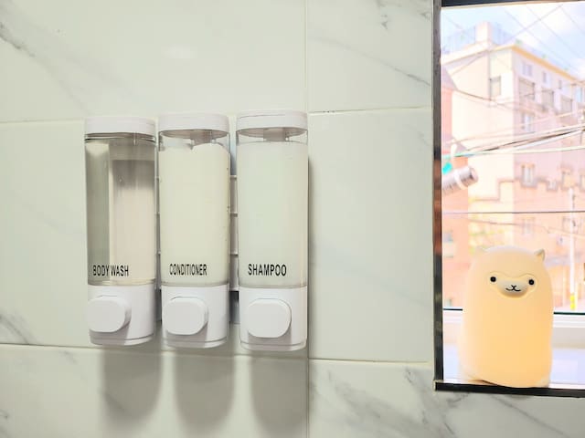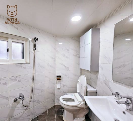 - 비데, 수건,휴지, 슬리퍼,샴푸,컨디셔너,바디워시,
