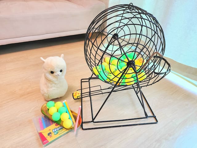 행잉체어, 무드등,무료 와이파이, 투호, 로또 기계,