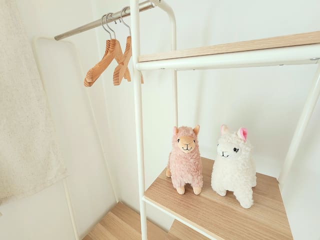 - 퀸 베드 2개, 수납 선반 옷걸이 사용