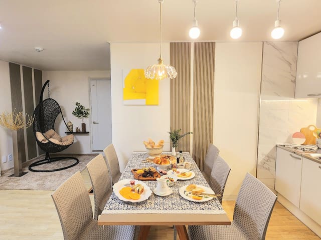 - 8인 식탁, 냉장고, 건조기,전자렌지, 커피머신,