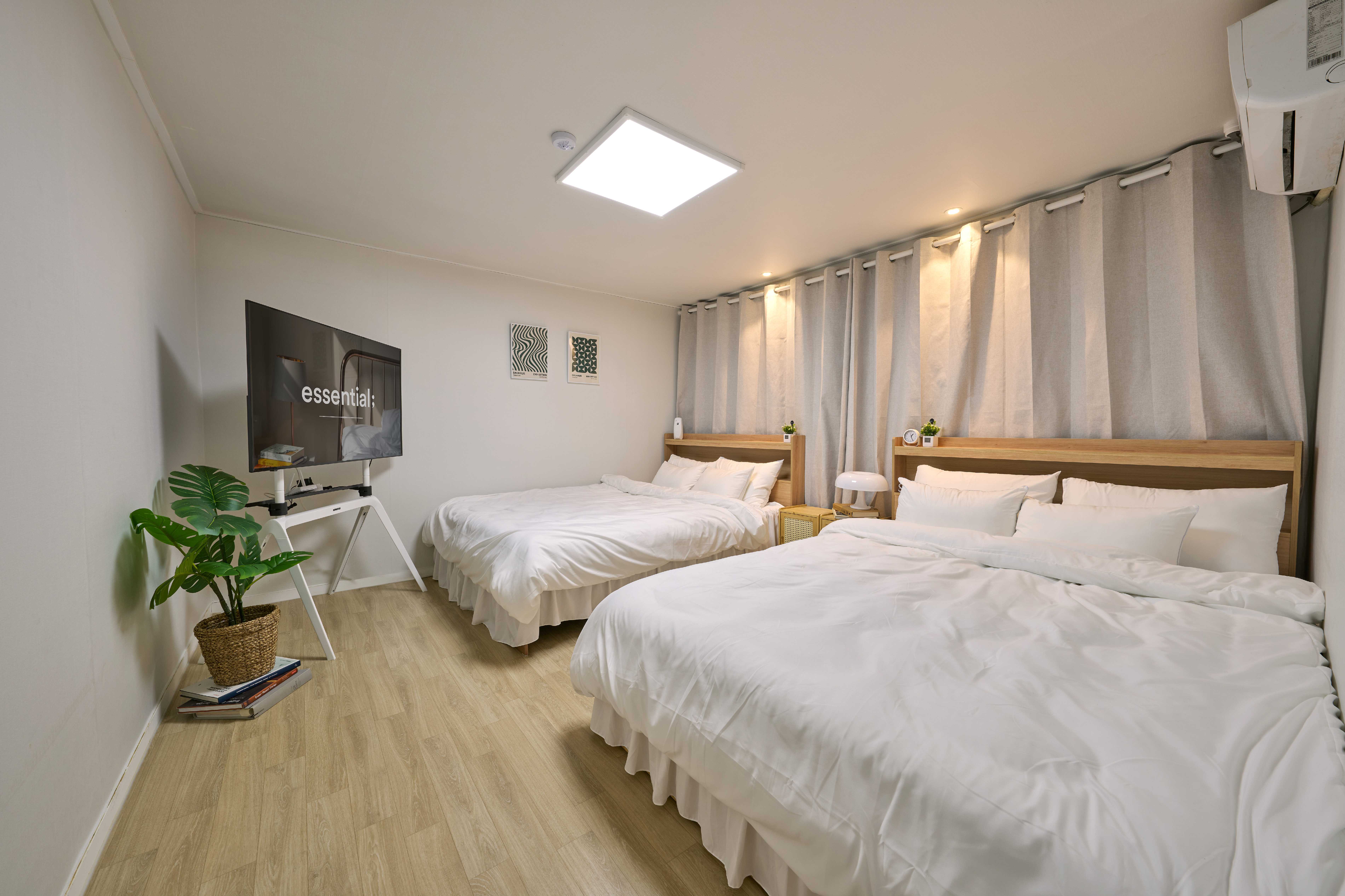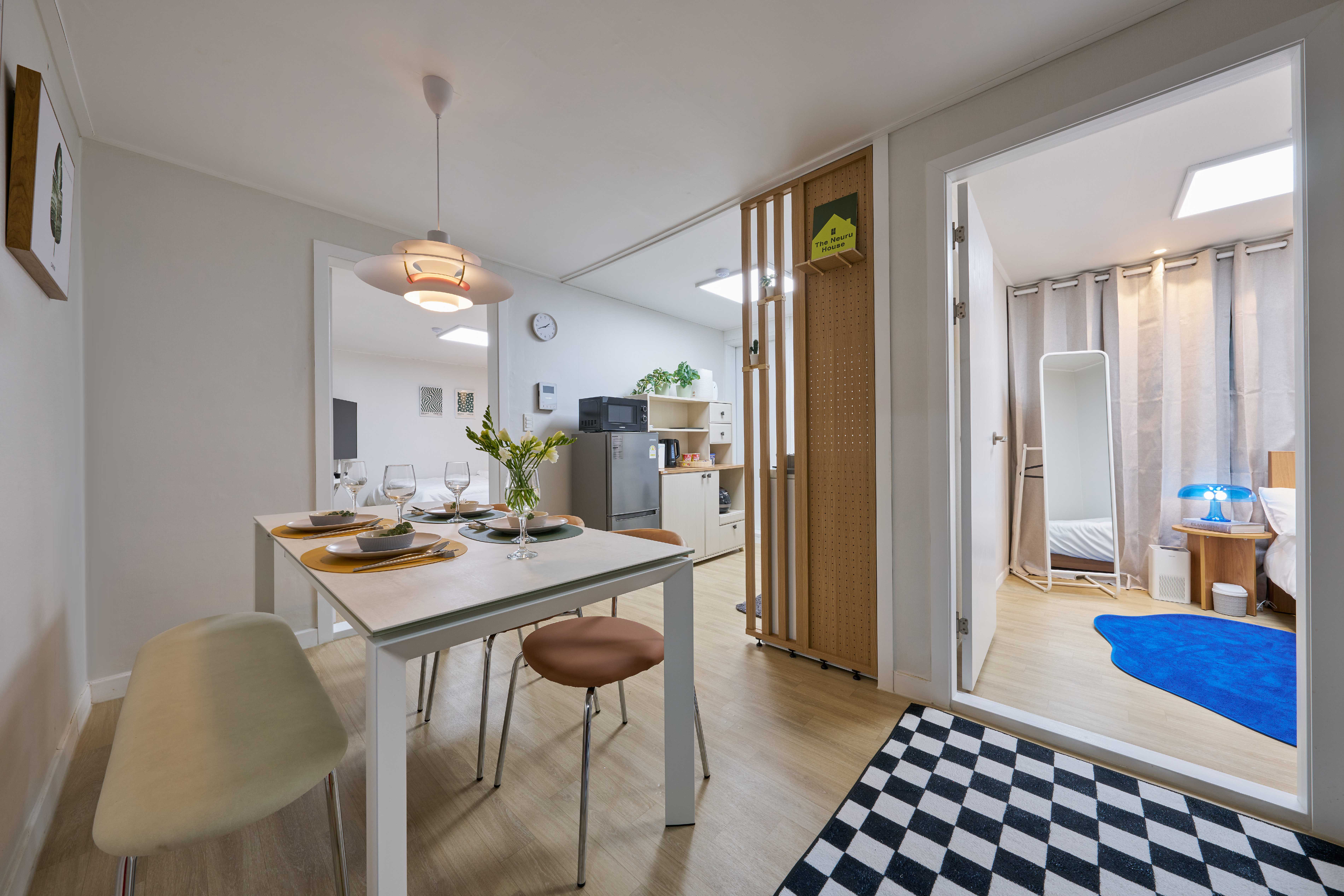 'Neuru' is a pure Korean word meaning 'a generous and leisurely state'. It refers to a space where you can relax slowly, without rushing, and with peace of mind. 'The Neuru' hopes to be a cozy space where you can relax your mind and body, away from the busyness of everyday life. Enjoy a comfortable rest in a stylish accommodation. • Free parking on site • 5-minute walk from Seoul National University Venture Town Station (Sillim Line) • Conveniently located near Seoul National University and various local attractions • 30-minute walk to Yeouido, Hongdae Station, and Gangnam Station • 1-minute walk to a 24-hour convenience store • 2-minute walk to an unmanned laundromat • Free Wi-Fi, smart TV, and Netflix available Accommodation ? Location • 5-minute walk from Seoul National University Venture Town Station (Sillim Line) • Conveniently located near Seoul National University and various local attractions ? Atmosphere • Cozy and comfortable space with a modern and minimalist interior • The best accommodation where you can enjoy both quiet relaxation and the convenience of the city ? Security Information • A building with a secure entry system, only registered guests can enter • Enhanced security with CCTV installation • Keyless entry with security code (individual code provided upon check-in) • For enhanced security, do not share the security code with others ?️ Amenities • Bed: Comfortable queen-size bed for a good night's sleep • Electronic devices: TV, high-speed Internet, free Wi-Fi • Kitchen facilities: - Microwave, refrigerator, fully equipped kitchen - Gas range available (must read safety instructions) - Basic cooking utensils, pots and pans provided - Bathroom amenities: Shampoo, conditioner, toothbrush, body wash, etc. • Other: Complimentary bottled water provided in the refrigerator Available spaces/facilities for guests ✔ Free use of all spaces in the accommodation [Living room] Dining table (6 people), chairs [Kitchen] Gas range, refrigerator, microwave, coffee pot, pots and frying pans, knives and cutting boards, various cooking utensils, wine opener, spoons, chopsticks, forks, plates, cups, beer glasses, wine glasses [Bedroom 1] 2 queen-size beds, side table, hangers, 3tpye charger, toilet paper, trash can, hair dryer, steam iron, air conditioner [Bedroom 2] 1 super single bed, side table, hanger, 3tpye charger, toilet paper, trash can, air purifier [Bathroom] Shampoo, conditioner, body wash, hand wash, towel, toilet paper, trash can, air freshener [Veranda] Separate collection, drying rack Other precautions 1️⃣ Manner time & noise information • Manner time is from 10:00 PM to 07:00 AM. • Please be mindful of noise when moving to a multi-family building. 2️⃣ Check-out time information • Check-out time is 11:00 AM • Please contact us in advance if you would like a late check-out. (10,000 won per hour) 3️⃣ Restrictions ❌? No indoor smoking, including e-cigarettes (fine 100,000 won) ❌ No cooking of food with strong smoke and odor (e.g. grilling meat/fish) ❌ No pets 4️⃣ Compliance with the number of guests • If there are additional guests other than the number of guests reserved, please inform the host in advance. (20,000 won per additional person) 5️⃣ Precautions for using the accommodation • Please wear indoor shoes indoors. • Compensation or laundry fees will be charged for damage to property or contamination of bedding. • Do not throw foreign substances such as wet tissues or food into the toilet. 6️⃣ Trash and dish organization • Waste separation: Use the waste separation bin on the veranda • General waste: Use next to the washing machine in each bedroom and kitchen • Food waste: Use next to the washing machine in the kitchen • Please place used dishes on the dish drying rack ✅ Additional notes • Short-term guests staying 4 days or less are requested to use the self-laundry room located 2 minutes away on foot.