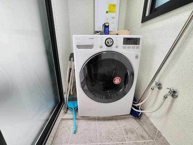 햇살이 잘 드는 베란다는 세탁기가 있고 건조에 적합해요.