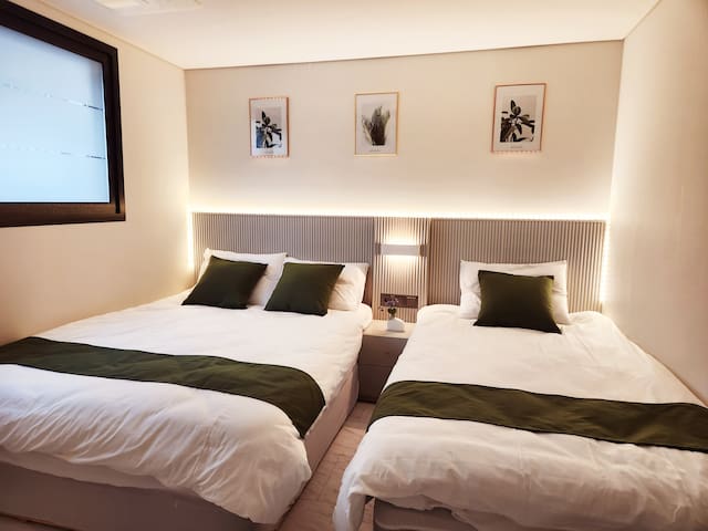각 방마다 편안한 침구가 마련되어 있어 가족이나 지인과 함께 지내기에 적합합니다. 아늑한 분위기로 편안한 휴식을 즐기실 수 있어요.