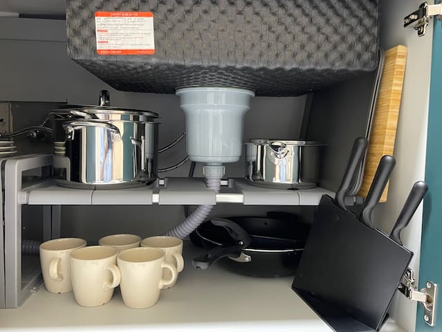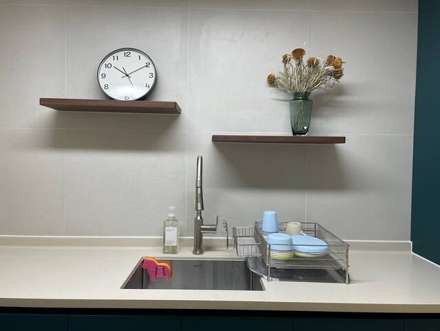 Built-in refrigerator, microwave, electric kettle