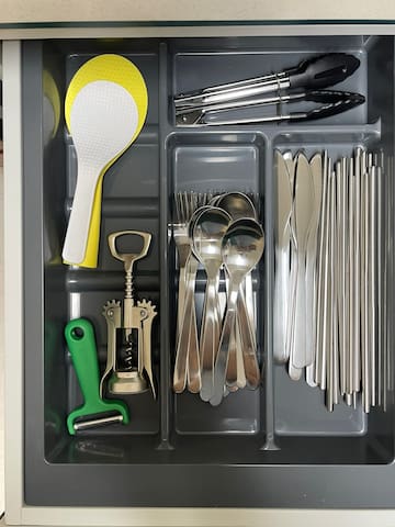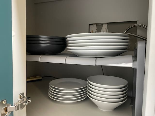 Full set of tableware and cooking utensils for 6 guests