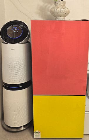 룸 입니다 게스트의 쾌적한 환경을 위해 LG 2단 대형 공기청정기,제습기,방역