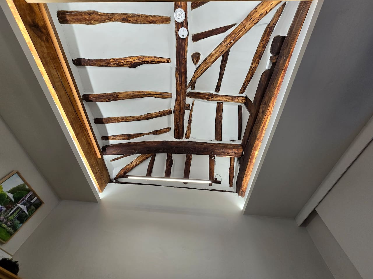 작은 방(게스트룸2)에는 2층 침대에 누우면 서까래가 가까이 보입니다. 안온한 분위기에서 휴식을 취할 수 있습니다.