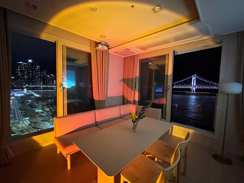 1. 놀라운 경치: 숙소에서 펼쳐지는 광안대교와 해운대 마린시티의 아름다운 전망이 인상적입니다. 밤낮으로 즐길 수 있는 멋진 경치가 최대 장점입니다.