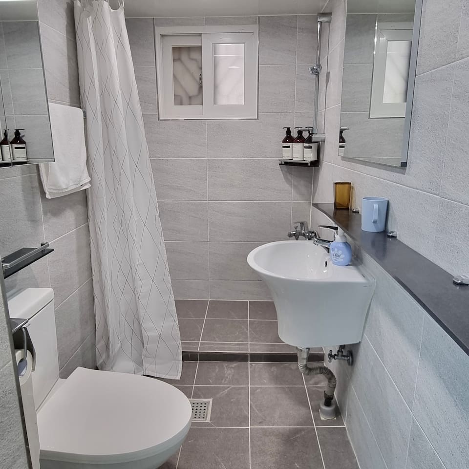 재혁 이삼성병원 건강검진을 위해 숙소 이용했습니다. 2명이서 각각 방 잡고 사용하기 아주 쾌적했습니다. 삼성병원까지 걸어서 5분 거리고 먹자골목에 위치하여 편의시설도 모두 잘 갖춰져 있습니다. 처음에 입구가 많이 어두워서 조금 놀랐는데, 요즘 해가 짧아져서 제가 애매하게 어두워지는 시점에 입실했던 거였습니다. 저녁 시간에는 건물 입구에 센서등이 켜지고 집 바로 앞도 공원이 있고 밝았습니다. 옆집 현관문 여는 소리나 계단 올라가는 소리가 조금 들리는데 시끄럽지는 않고 한밤중에는 이동을 안하셔서 조용합니다.