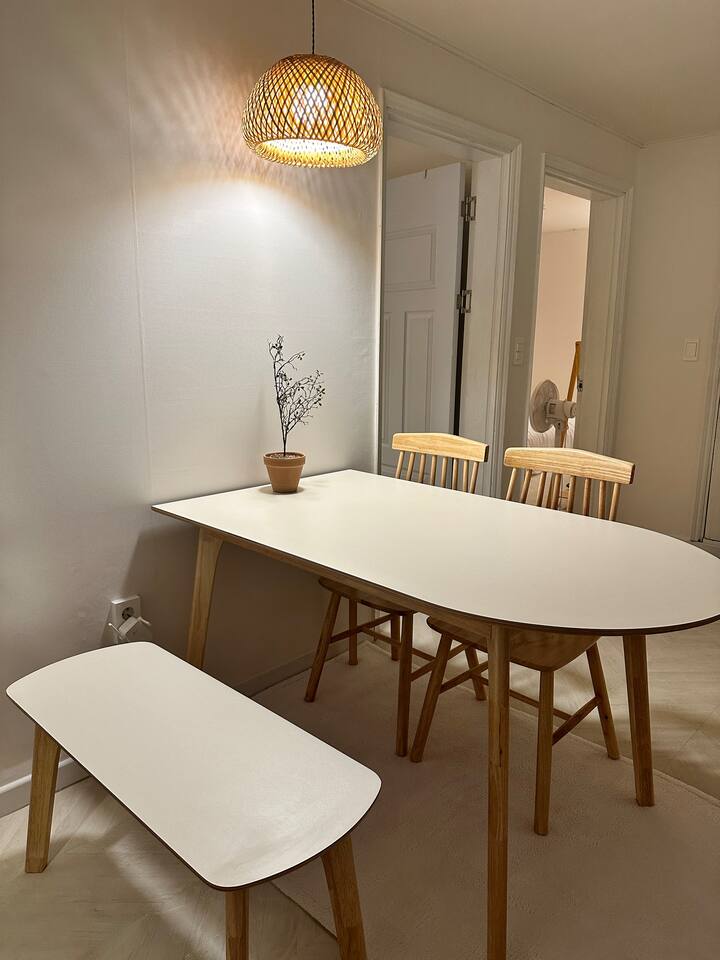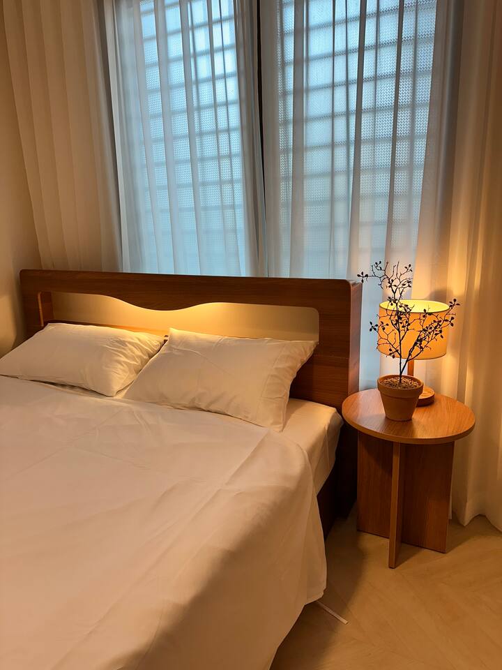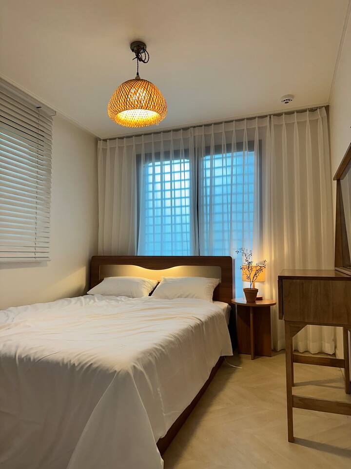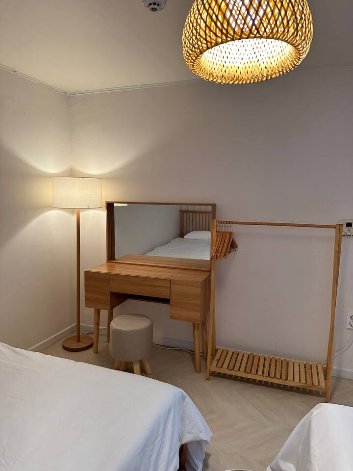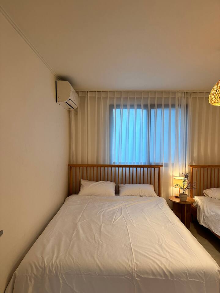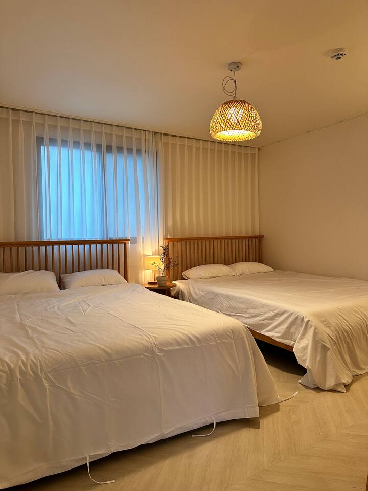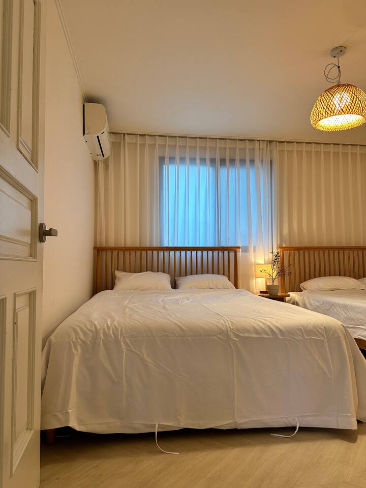 此住宿最多可容納 6 人,非常適合與家人或朋友一起舒適入住。 - 巴士站2分鐘 - 便利商店2分鐘 - 投幣式洗衣房2分鐘 [客廳] 最多可入住6人。配有餐桌、智慧電視和風扇。 【廚房】配有電磁爐、微波爐、冰箱。 【房間大】這個房間可以讓你感受到溫暖的陽光,有兩張大床,空調,衣架,梳妝台。 【小房間】舒適的空間,配有一張大床、衣架、空調和風扇。 【衛浴】提供毛巾、洗髮精、護髮素、沐浴乳、共用牙膏、牙刷、拋棄式浴巾。 [可供房客使用的空間/設施] 所有客房均可供使用,屋頂可提供火坑和燒烤設施。使用火坑或烤肉時請聯絡房東。 *注意* - 請務必在住宿內脫鞋。 * 如果住宿內的地毯或地板被污染,將收取額外的清潔費。 - 入口外安裝了閉路電視,用於安全和入住檢查,如果進入人數不超過允許的人數,可能會收取額外費用。 *非住宿訪客與額外客人收取相同費用(每人20,000 韓元) - 室內和整個房屋內禁止吸煙(室內吸煙將立即驅逐,並處以200,000 韓元罰款) - 請勿在廁所內使用濕紙巾、不得亂扔食物或嘔吐*可能會向您收取維修費。 - 垃圾依類型分類 - 提早入住/延遲退房(最多 2 小時)每小時需額外支付 10,000 韓元