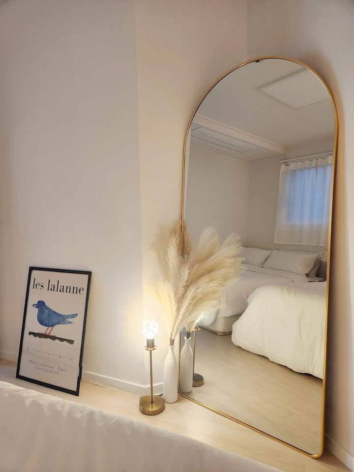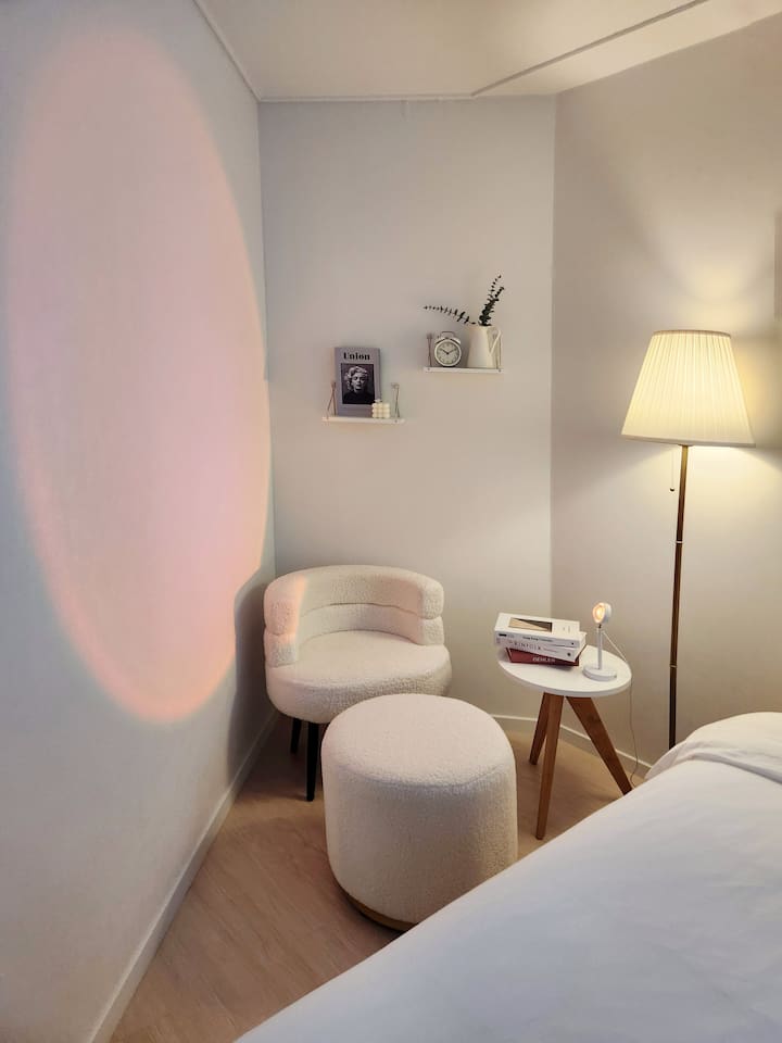 [單色住宅] 2個房間,光束投影儀,時尚的住宿,隱蔽處,弘大,延南洞