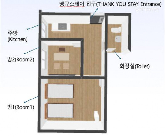 感謝入住(感謝入住)情感住宿/金浦機場 5 分鐘/松亭站 7 分鐘步行/臥室餐廳分開