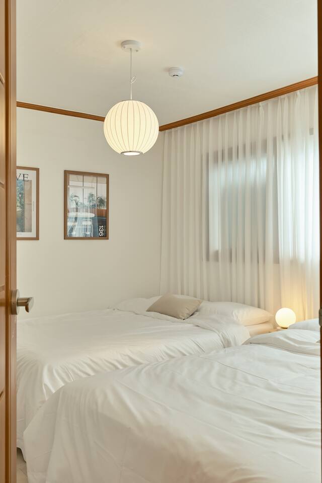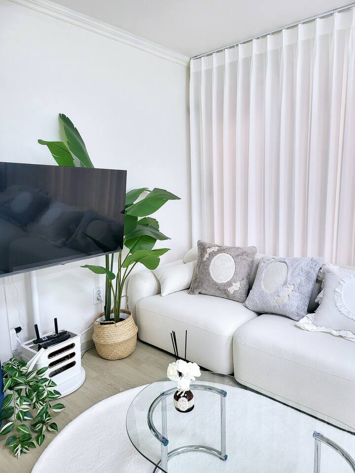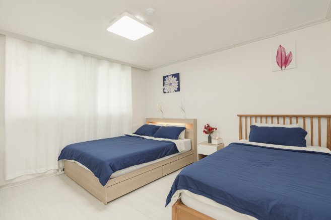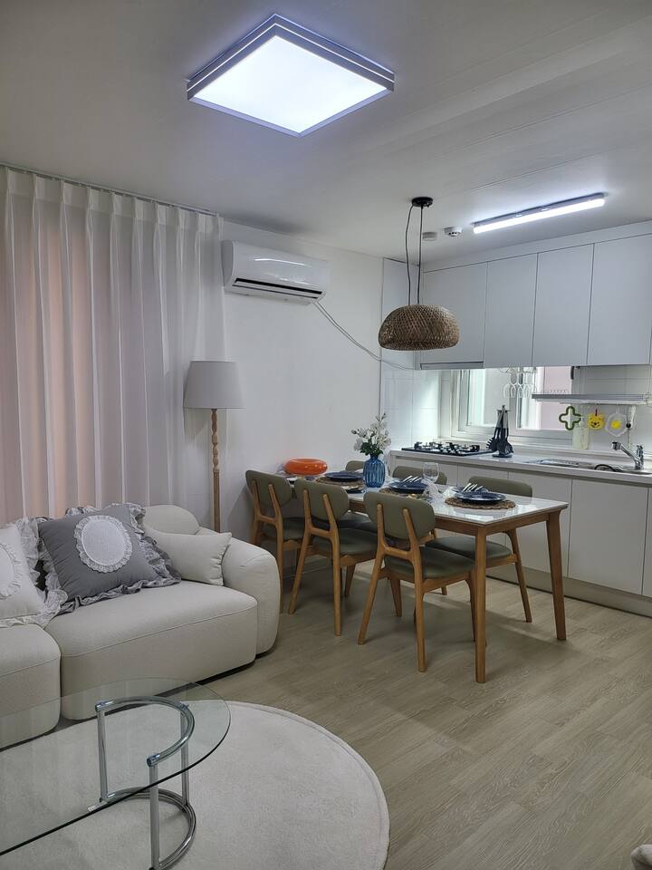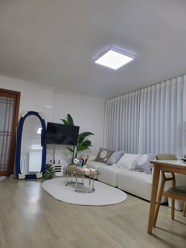 3張大床,最多7人,江南20分鐘,新林站,機場巴士,弘大30分鐘,2間臥室,客廳