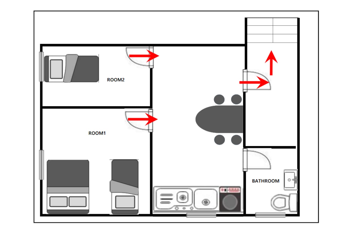 最多入住人數:6人,3間房間,1間浴室,2張單人床,3張超級單人床,6人餐桌,