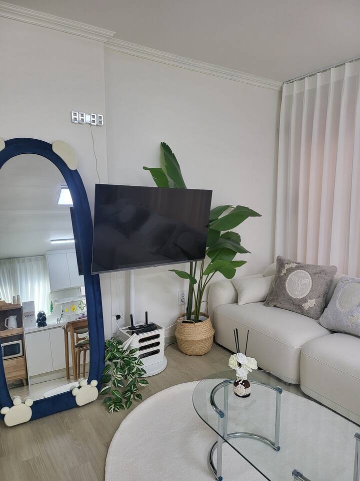 [公開特價]結束住宿,距離建國大學站7分鐘,聖水/蠶室/江南附近,機場巴士,光束投影儀,Netflix,消毒
