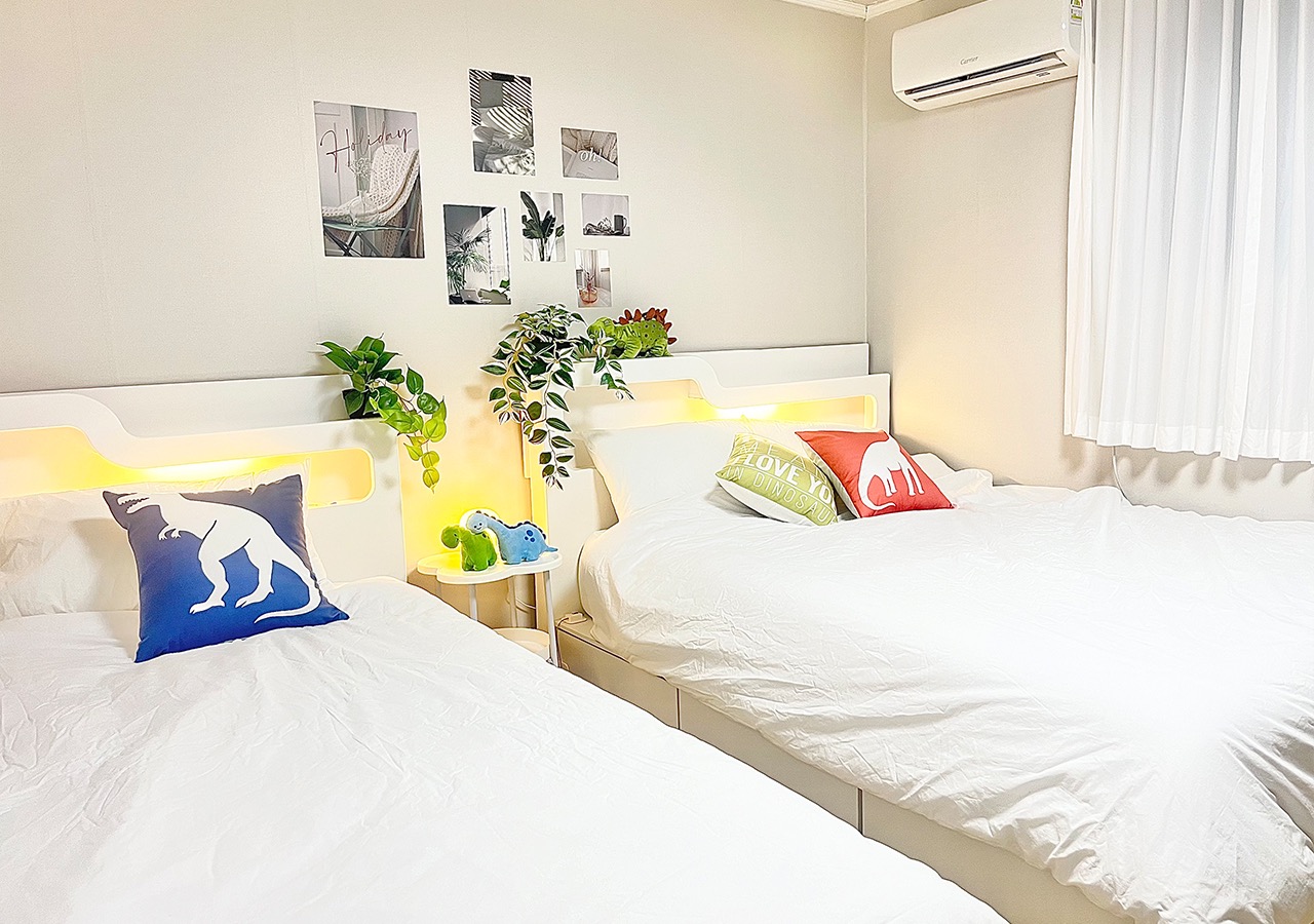 首爾大學創業城站/首爾站、弘大、江南30分鐘/感性住宿/6人、3張大床/Olyly造型/飯店寢具/
