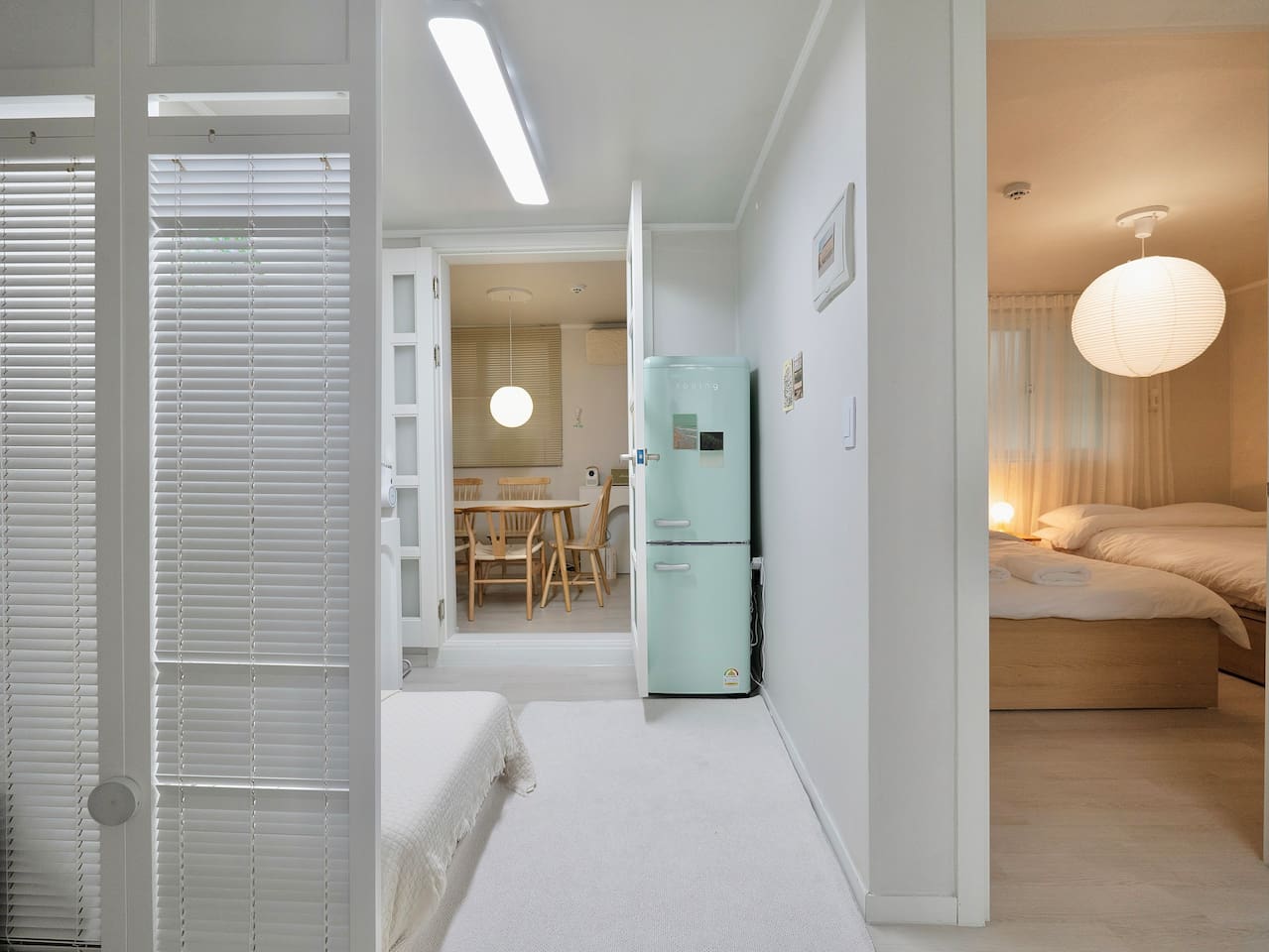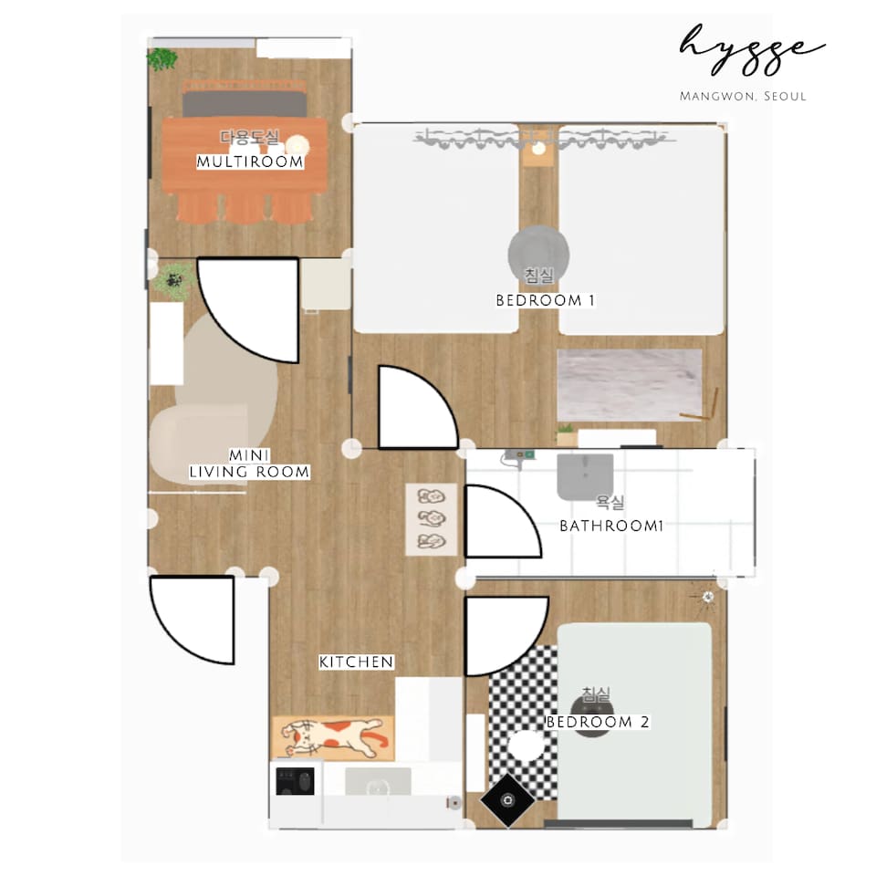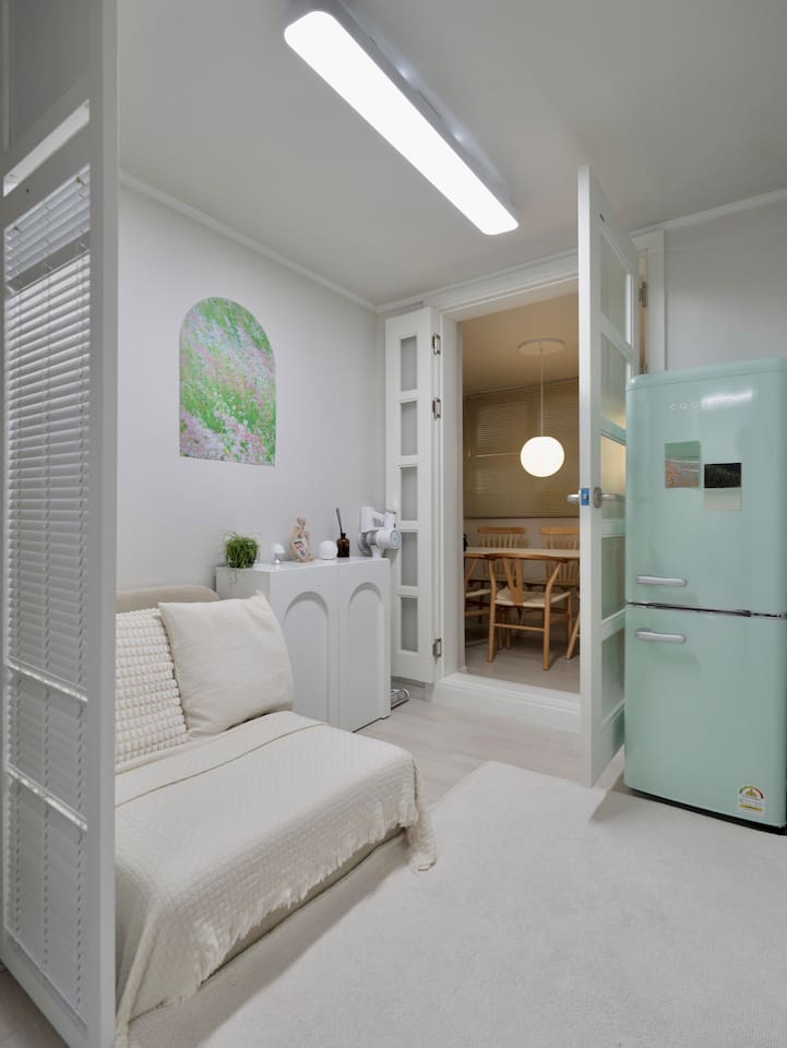 大家好,这是你们的主持人智惠?♀️。它刚刚经过改造,是一个适合小型聚会的空间,每个房间都经过精心设计,增添了舒适感。望远市场 (Manglidan-gil) 和望远市场 (Mangwon Market) 的餐厅就在街对面,弘大 (Hongdae) 和上水 (Sangsu) 也很近。对于喜欢韩国料理的外国人、带孩子的家庭以及前往车站的便利性来说,这里拥有最佳的位置。我们将清洁视为重中之重,并提供定制服务以及酒店品质的床上用品。最新的改造提供了一个干净、时尚的空间。便捷的交通和一切必要的设施让您的首尔之旅更加特别。如果您遵守规则以确保安全、安静的住宿,我们将不胜感激。我们希望您能在我们家留下珍贵的回忆。 Hygge, Mangwon [设计] 最近重新装修!这就像一个整洁的新家。两张大床的房间和多功能室以白色、米色和木色混合搭配,其他卧室则以黑色为主色调,别致。我们放置了精心挑选的灯光和漂亮的植物。 [位置] *交通?地铁:望远站1号出口步行8分钟(约500米)。机场巴士6011:从仁川机场到世界杯体育场入口(14815)需要44分钟 - 步行12分钟到家 *停车:步行4分钟付费停车场(望远公共停车场)✔可步行到世界杯体育场! ✔ 望远市场、望远世界杯市场步行5分钟✔ 合井交通2分钟✔ 上水站交通3分钟✔ 望远汉江公园交通4分钟✔ 京义线林道交通6分钟✔ 弘益大学入口8分钟✔ 首尔站交通17分钟✔ 明洞交通 20 分钟 ✔ 乐天世界(蚕室) 交通 50 分钟 ✔ 江南 交通 50 分钟 [清洁] 我们非常注重清洁。您可以放心,舒适的酒店床上用品经过彻底的清洗和管理,通风和检疫也得到彻底的落实。 【服务】 - 行李寄存服务:提早入住或延迟退房时,如需当天寄存行李,请提前联系我们。我们会保证您的安全:) - 我们为客户提供周到的设备租赁服务。我们准备了雨伞和雨衣,以防下雨。请在旅途中使用并随身携带,以防意外下雨。我们还准备了镜片护理液、泡沫清洁剂和化妆棉,以防您忘记使用。如有需要,还提供急救箱和手机充电线。您打算去望远市场购物吗?我们还租了购物车供购物时使用:) - 入住:下午4点之后 - 退房:上午11点之前 ⏲ 调整时间时每小时需支付10,000韩元的额外费用(最多2小时,如果超过,则必须预订) 1晚))【卧室1】◽2张大床◽乡村酒店床上用品◽衣架/衣架和全身镜◽窗帘/大气相框/地毯◽茶几/边桌灯/吊灯◽空调◽可爱植物[卧室2] ◽ 一张大号床 ◽ 乡村风格的酒店床上用品 ◽ 衣架/衣架 ◽ 百叶窗/别致的相框/地毯 ◽ 床头柜/边桌照明/吊灯/无线照明 ◽ 空调 ◽ 可爱的悬挂植物[餐厅] ◽ 6 人桌人 ◽ 蓝牙音箱和光束投影仪 ◽ 氛围框/百叶窗/物体装饰 ◽ 吊灯和台灯 ◽ 壁炉控制台 ◽ 空调 ◽ 免费 Wi-Fi ◽ 纸巾和纸巾盒 ◽ 垃圾桶 需要儿童椅、床的家庭客人,餐具,浴室台阶等,请提前联系我们,如果给我,我会准备:)? 【迷你客厅】◽单人沙发床/靠垫/地毯/毯子◽冰箱◽储物柜◽感性海报◽无线照明这里可以是休息的等候室,也可以把沙发改造成睡觉的床。 (可根据要求提供额外毯子。) [浴室] ◽ 洗发水/护发素/沐浴露/洗手液/牙膏 ◽ 吹风机和卷发棒 ◽ 泡沫清洁剂/镜片清洁液/棉签/化妆棉/发带 ◽ 蓬松的毛巾和还提供淋浴毛巾(每人 1 条)。浴室最近重新装修过,非常舒适干净。 [厨房] ◽ 微波炉/煤气灶/电热水壶/洗衣机 ◽ 6人餐具(勺子、叉子、刀、筷子) ◽ 夹子/长柄勺/自卸车/剪刀/刀/切菜板 ◽ 煎锅/锅/锅架 ◽提供杯子/酒杯/啤酒杯 ◽ 咖啡豆和研磨机滴水套件 ◽ 洗衣粉/晾衣架 您可以煮简单的菜肴并加热它们。早上喝一杯热滴漏咖啡放松一下。 ☕ [入口等] 所有房间均设有火灾警报器、应急灯、疏散通知等以确保安全。入口处有灭火器。 ◽ 鞋柜 ◽ 急救药箱/雨伞/雨衣/独立回收箱 ◽️ 我们还借给您一辆购物车,方便您去街对面的市场购物:) 如果您在入住期间有任何疑问或需要帮助,请给我们留言任何时候,我们都会回复:) * 其他注意事项 ✔ 损坏、污染(床上用品、地毯、墙壁、家具等)和丢失:按正常价格赔偿 ✔ 室内绝对禁止吸烟(如果被发现吸烟, ✔ 禁止携带宠物✔ 厨房内禁止吃肉、鱼、油炸食品(禁止简单烹饪)✔ 由于这里是住宅区,请保持安静✔ 为了安全和检查人数,仅在入口处安装了闭路电视。如果发现身份不明的人员,可能会按人收费。(未成年人只有在有人陪同的情况下才可以入住)可以。) ✔ 如果没有通知退房时间,将收取额外费用(每 10 分钟 10,000 韩元) ✔ 退房时,请将回收物、一般垃圾和食品垃圾分开, ✔ 切勿将卫生纸或其他女性用品或食物残渣留在浴室内。请勿将其丢弃。如果管道堵塞并发生回流,可能会收取施工费用。(请扔到提供的垃圾桶中.) ✔ 如果您需要加床品,请提前联系我们。如果您未经询问而使用加床品,我们将收取洗衣费。 ✔ 我们的房子位于干净的半层,位于下4楼后不久楼梯。常备有除湿机和空气净化器,所以干净舒适,根本不会以为自己是在半楼层:)因为是充满爱心的住宿所以会使用。希望大家展现出配合规则的美丽文化人的态度。我们将尽力为您提供良好的住宿条件。玩的很开心 :)