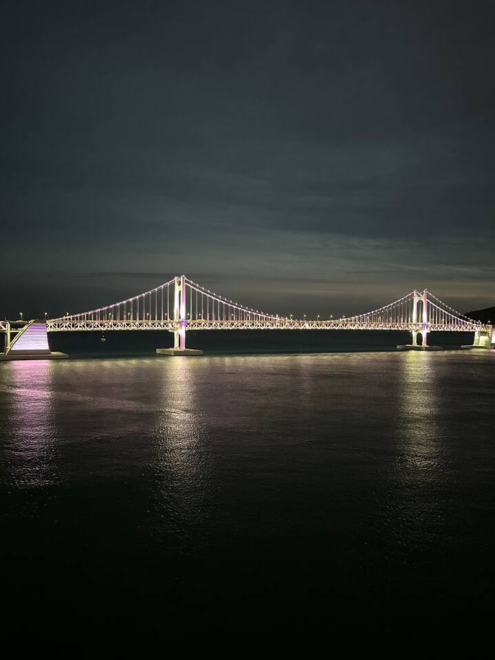 homeGPT Reviewer이 숙소는 광안대교가 창문 바로 앞에 위치한 아름다운 바다 뷰를 자랑하며, 매우 청결한 상태로 잘 유지되어 있습니다. 주변에 필요한 시설이 다양하게 입지해 편리함을 더하고, 호스트의 친절함과 신속한 응답은 높은 만족도를 제공합니다. 숙소 근처 해변과 맛있는 젤라또 가게, 편의점 등이 있어 생활의 편리함도 더합니다. 위치, 뷰, 청결도 모든 면에서 높은 평가를 받으며 부산 여행 시 재방문 의사가 높은 숙소입니다. 이런 좋은 환경에서 휴식을 취하며 보낸 시간은 여행의 큰 즐거움 중 하나로 손꼽힙니다.