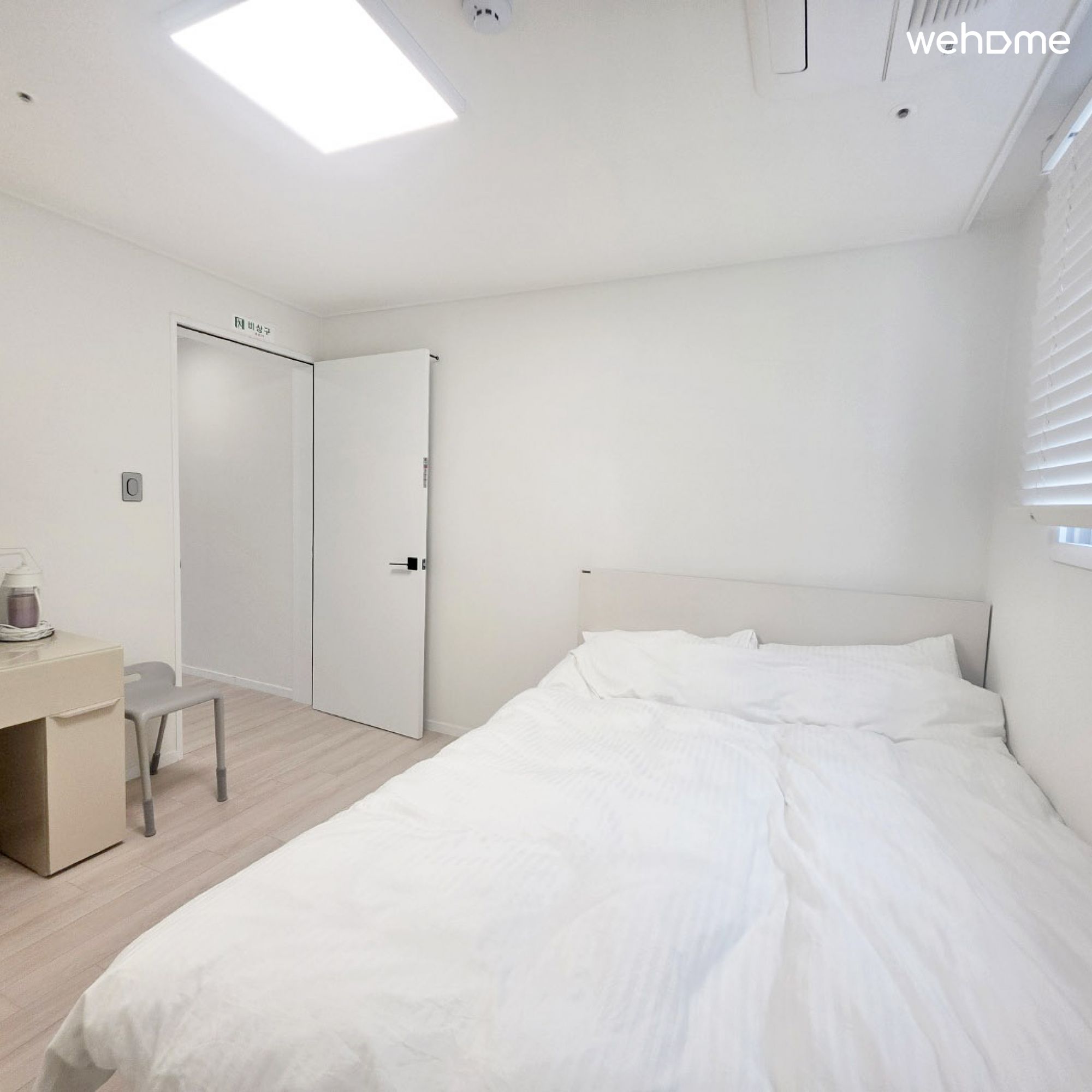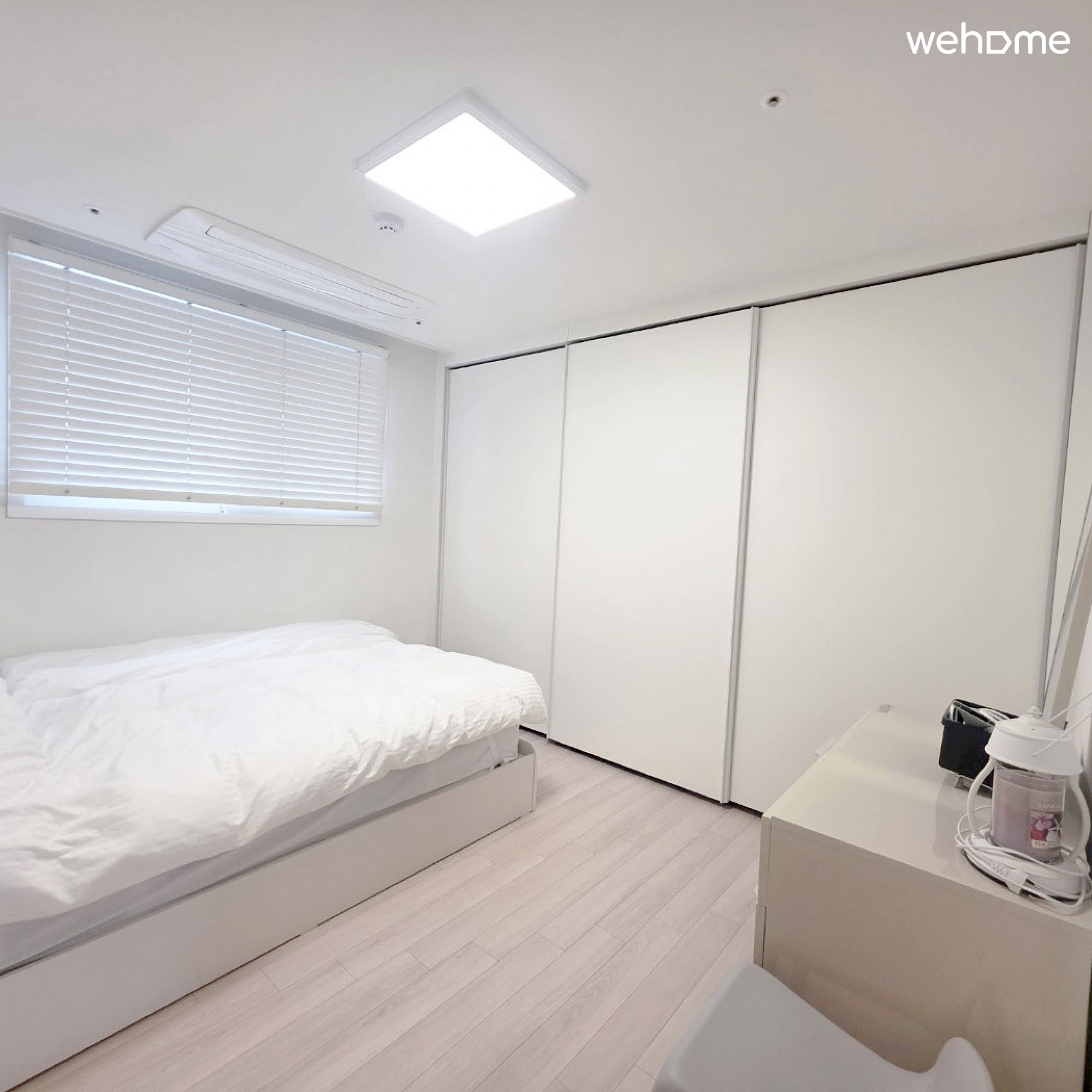 大号床、梳妆台、内置衣柜、百叶窗、空调