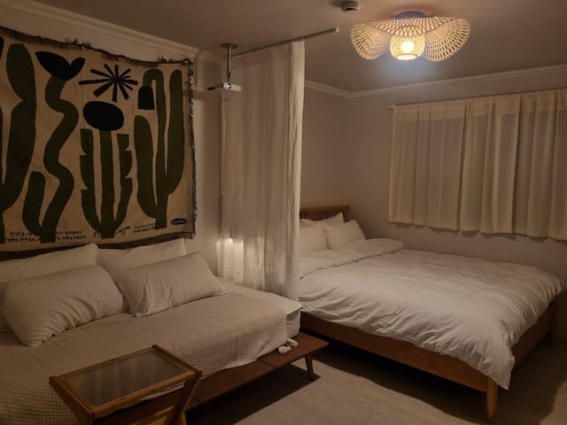 【开业特价】钟路惠化站|东大门|3张大床,6人|骆山公园情感住宿| Netflix